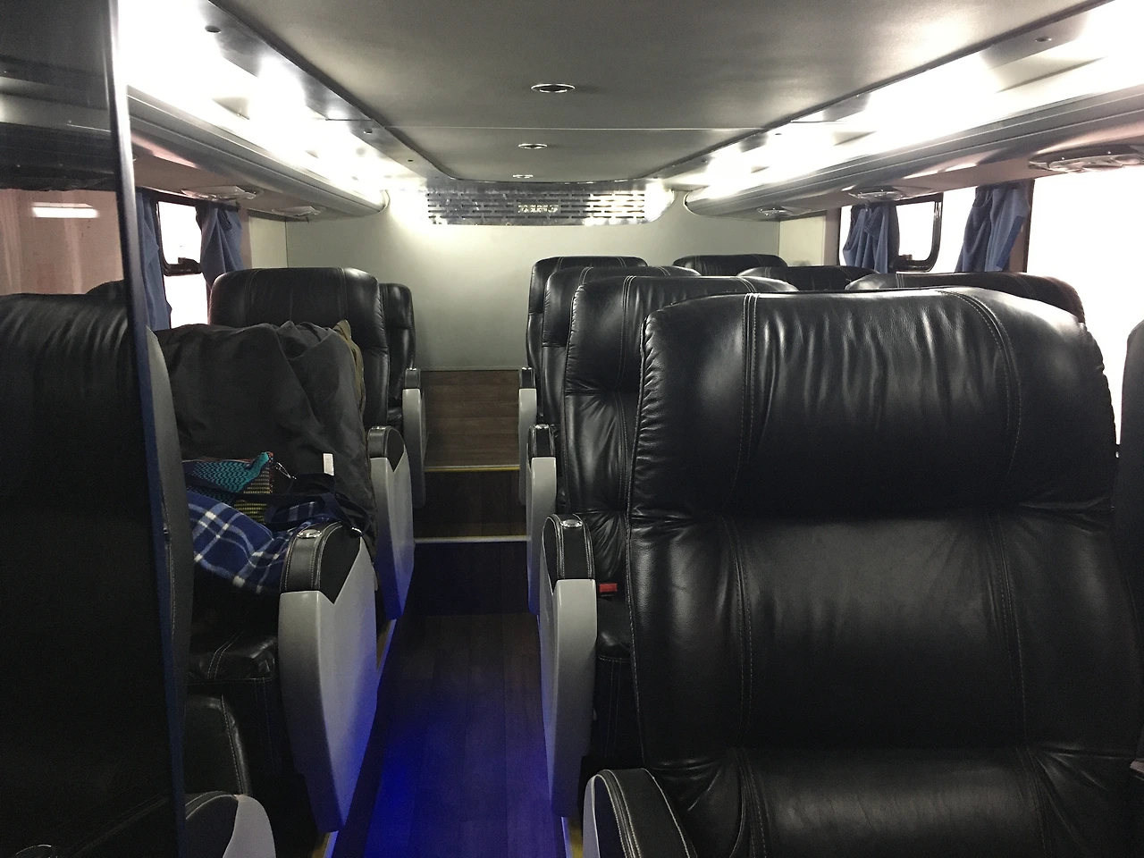 그러나 기우에 불과했다. 타자마자 160도로 젖혀지는 널찍한 소파 의자와 청결한 버스 안 화장실에 나는 감탄을 연발했다. 허리 협착 때문에 복대까지 했던 비행기 이코노미 석에서의 시간과 비교할 수 없이 만족스러운 환경이었다. 이층의 제일 앞자리는 앞이 훤하게 보인다는 장점이 있지만 빛이 사방에서 쏟아져서 잠을 자기 좋은 환경은 아닐 것 같았다. 내가 탄 아래층은 옅게 선팅이 되어있어 바깥이 안 보이는 것은 아쉽지만 고산을 극복하기 위해 이참에 푹 자두자 싶었다. 새벽부터 긴장해서 짐을 싸고 풀고를 반복했더니 타자마자 곧 졸음이 쏟아졌다. 널찍한 의자는 양반다리를 해도 될 정도로 안락했다. 9시간 동안의 이 멋진 환경이 단돈 40솔(14,000원)이라니, 크루즈 델 수르 같은 대형버스 회사를 이용할 필요가 없다! 입구에는 ‘Frena Acoso’, 그러니까 성추행 방지 캠페인 포스터가 떡하니 붙어 있었지만 똥똥한 페루 아줌마와 나, 둘 뿐인 일층 공간에 긴장감은 없었다. 버스는 평균 80km의 속도로 순조롭게 달리고 있었다.