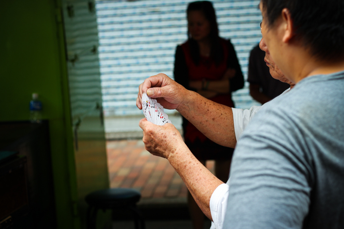 돌아다니는 사람이 많은 것치고 대부분의 상점, 좌판은 한가한 편이었다. 관광객보다는 현지인이 더 많이 찾는다지만, 그 현지인들도 그저 시간이 남아 구경이나 슬슬 해 볼까 하는 사람들이었다. 나란히 마주 보고 있는 네 곳의 점포 주인들은 카드놀이에 심취해 있었다. 이런 판이 벌어지면 꼭 끼어드는 구경꾼들도 옆에 붙어 훈수를 두고 있었다. 손에 쥐고 있는 카드의 장수를 보아 포커는 아닌 것 같고, 설마 어르신들이 원 카드나 도둑 잡기라도 하시는 중인가 나도 덩달아 흥미가 생겼다. 이러다 손님이라도 오면 분명 게임이 지지부진하게 늘어질 텐데, 다행인지 불행인지 그럴 일은 없어 보였다.