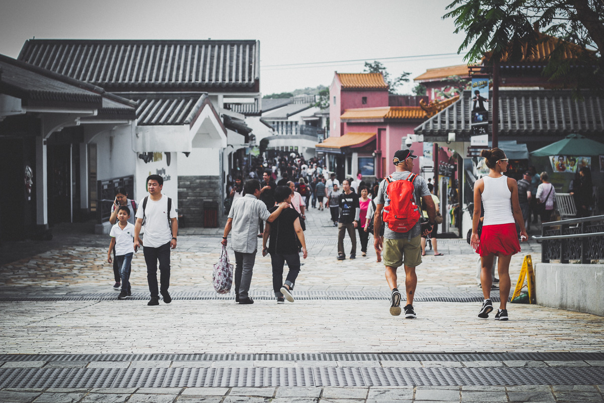 포린사를 둘러보고 케이블카를 타기 위해 옹핑 빌리지를 가로지를 때도 거대한 불상은 계속 눈에 띄었다. 하지만 이 모델하우스 같은 건물들(특히 기와가 그렇게 보이는) 사이에선 불상조차도 기념탑이나 사람들을 즐겁게 해주기 위해 세운 캐릭터 모형으로 격하된 느낌이었다. 구름처럼 피어오른 향 연기가 자욱하던 사원에서 많이 걸어 나온 것도 아닌데 벌써 온갖 잡화점과 식당, 카페에 둘러싸여 있었다. 세속의 물결에 바짓단이 젖고 있었다. 이 불균형은 무엇인지, 이 이질적인 느낌은 무엇 때문인지 감이 오지 않았다. 산의 가장 높은 우듬지 위로 불쑥 솟은 불상은 그 크기에도 불구하고 멀게만 느껴졌다. 그러고 보면 한가로운 소들도 옹핑 빌리지 안쪽까진 들어오지 않았다. 이곳엔 그들이 뜯어먹을 풀 한 포기도 자라 있지 않으니 어쩌면 당연한 일일지도 몰랐다.