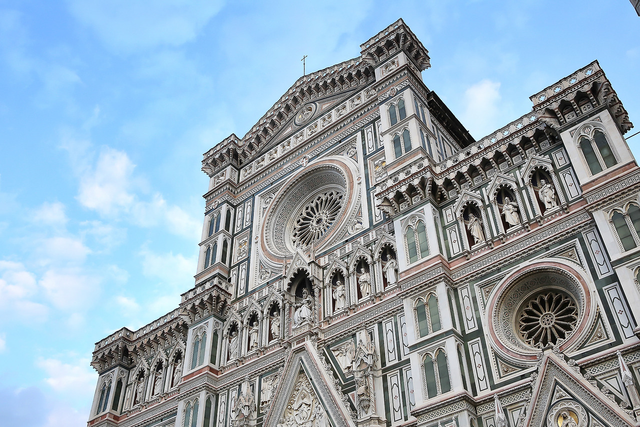 격자로 된 피렌체의 좁은 골목을 걷다 보면 중세와 르네상스시대를 걷고 있는 듯한 착각이 든다. 벽안에 무엇이 있기에 이렇게 굳건할까. 어째서인지 만져봐야 할 것 같은 호기심에 건물에 손바닥을 대고 스쳐 지나간다. 세계에서 네 번째로 큰 규모의 두오모, 산타 마리아 델 피오레Santa maria del fiore(꽃의 성모 마리아 성당)를 비롯해 피렌체 도심의 주요 명소들은 오백 년 전 르네상스의 흔적을 고스란히 간직하고 있다. 눈에 띄게 낡았다 싶은 벽의 건물엔 천 년의 역사가 담겨 있지만, 견고하고 단단해 불도저가 밀어도 끄떡없을 것 같다. 분명 이 건물을 지은 이들은 적의 침입을 막으려는 의도도 있었을 것이다.