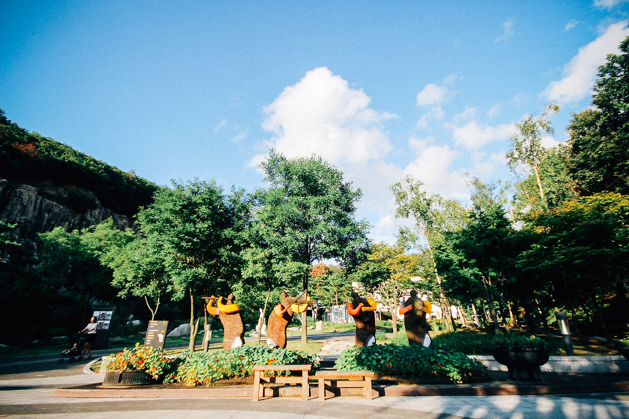 먼저 아이들의 눈을 사로잡은 건 ‘꼬마 버스 타요’의 라니를 닮은 모노레일이다. 매표소에서 공원까지 좀 걸어 올라가야 하는데, 이제는 고민도 안 하고 모노레일을 탄다, 아이들을 핑계로. 기력이 넘치는 아이들은 은하의 신비, 별들의 흥미로운 이야기와 상관없이 천문과학관을 신나게 뛰어다녔다. 물론 아이들이 더 좋아한 건 건물 앞, 계곡 옆에 있는 오줌 싸는 개였지만….