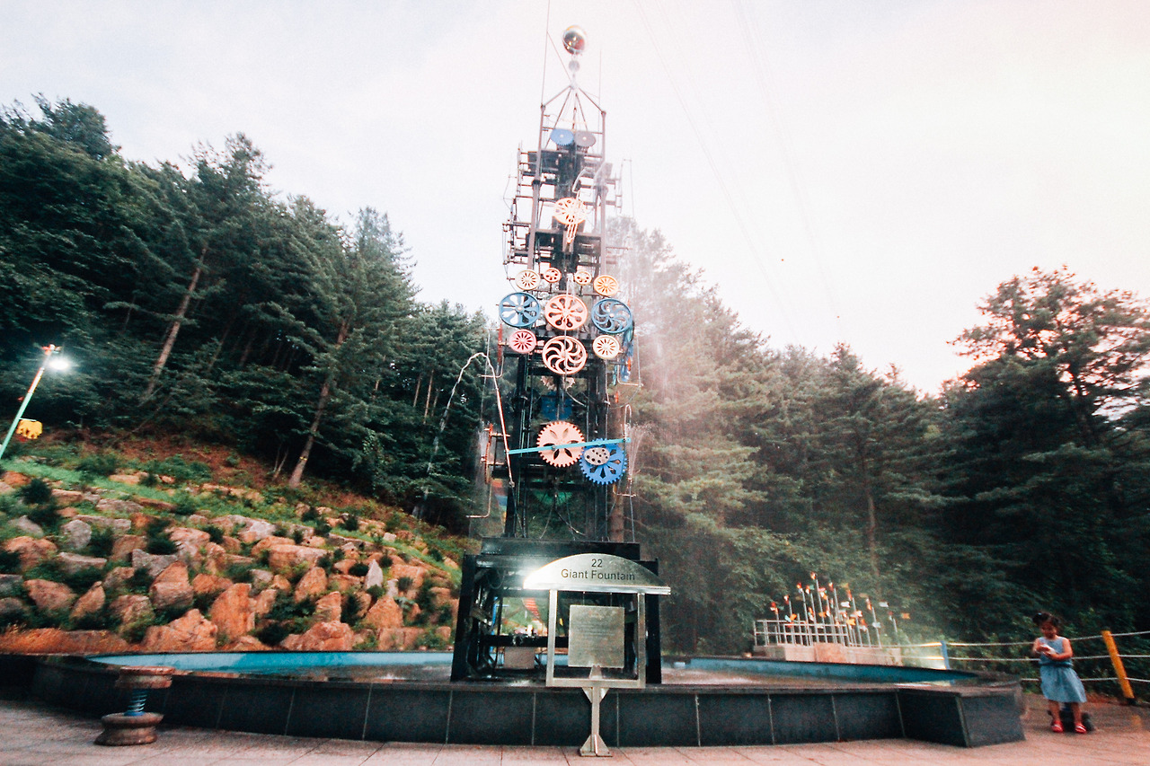용감한 자와 겁쟁이를 가르고 나서 좀 특별한 계곡에 갔다. 이 계곡은 바위가 아닌 각종 과학 도구로 만들어졌다. 계곡 꼭대기에 커다란 분수가 있는데 이번에도 힘을 낸 것은 큰 딸이다. 멀리서 볼 때도 컸던 분수는 가까이서 보니 더 컸다. 우리 부녀는 분수를 돌며 물방울을 맞으며 한참 동안 수다(유난)를 떨었다. 계곡을 내려오는 아이의 표정이 환한 달보다 더 밝았다.