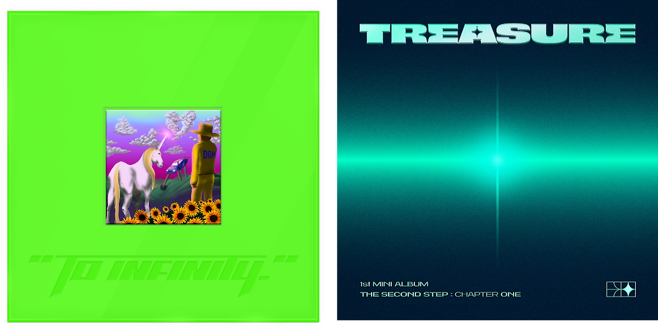 2021년 12월에 발매했던 송민호의 정규 3집 “TO INFINITY” 앨범도 친환경 소재로 제작됐다. 앨범 내 인쇄물은 친환경 인증 단체인 산림관리협회(FSC)의 인증을 받은 용지와 저염소 표백펄프를 사용한 저탄소 용지 및 수성 코팅으로 만들어졌다. 특히, 재활용이 어려운 겉면 비닐 재질이 아닌 최대한 비슷한 효과를 낼 수 있는 환경보호 코팅 기법을 쓰기도 했다. 별도의 기기 없이 스마트 디바이스로 음악을 들을 수 있는 에어 키트 형태의 앨범의 플라스틱도 옥수수 전분으로 제작되어 생분해 가능한 PLA 플라스틱과 100% 재활용되는 종이를 사용했다. 이때 팬들의 긍정적인 반응으로 인해, 같은 소속사의 트레저 또한 지난 2월에 나왔던 “더 세컨드 스텝 : 챕터 원(THE SECOND STEP : CHAPTHER ONE)을 친환경 앨범으로 만들었다. 앨범에 들어가는 인쇄물은 송민호의 친환경 앨범과 마찬가지로, FSC인증을 받은 용지와 저탄소 친환경 용지의 콩기름 잉크, 환경보호 코팅으로 제작됐다. 앞서 송민호의 앨범에선 완전히 해결하지 못했던 포장 비닐의 대체재도 옥수수 전분에서 추출한 원료로 만든 친환경 수지를 활용한 생분해 가능한 PLA 소재를 찾아내, 이번 트레저 앨범부터 반영했다.