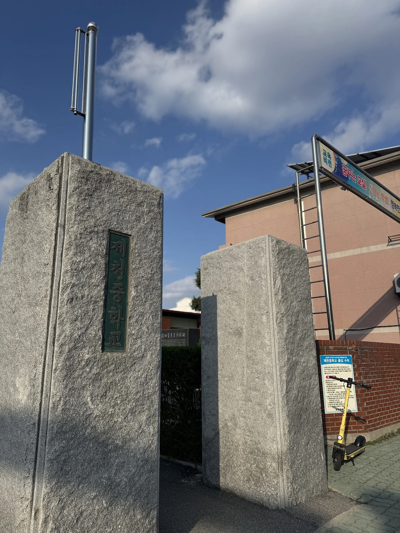첫번째는 도균의 모교인 제천중학교와 도균이 유도를 배운 제천 유도관이다. 제천고속버스터미널에서 내리면 도보 5분 안에 있는 제천 유도관은 도균이 12살부터 3년 간 선수를 준비하며 다닌 곳이다. 유도를 시작한 지 2개월 만에 대회에서 우승했고, 지금까지도 투기 종목 전반에 능하며 UFC를 향해 지대한 관심을 보이는 도균에게 유도는 트레이드 마크이자 팬덤에게도 가장 큰 인상을 준 특징이다. 유도관에서 도균의 사진을 보았다는 한 팬의 후기도 보았으나, 필자가 방문했을 때는 크게 발견하지 못 했다. 지금은 유도관을 떠난 지 4년 정도 되어 아마 도균을 기억하는 사람이 아무도 없을 거라고. 유도관으로부터 약 10분 정도 걸어서 이동하다 보면 제천중학교를 발견할 수 있다. 지나가는 길에는 초등학교와 청소년 복싱 대회 슬로건도 볼 수 있는데, 그로 미루어 보아 어렴풋이나마 도균의 어린 시절을 상상해 보는 재미가 있다.