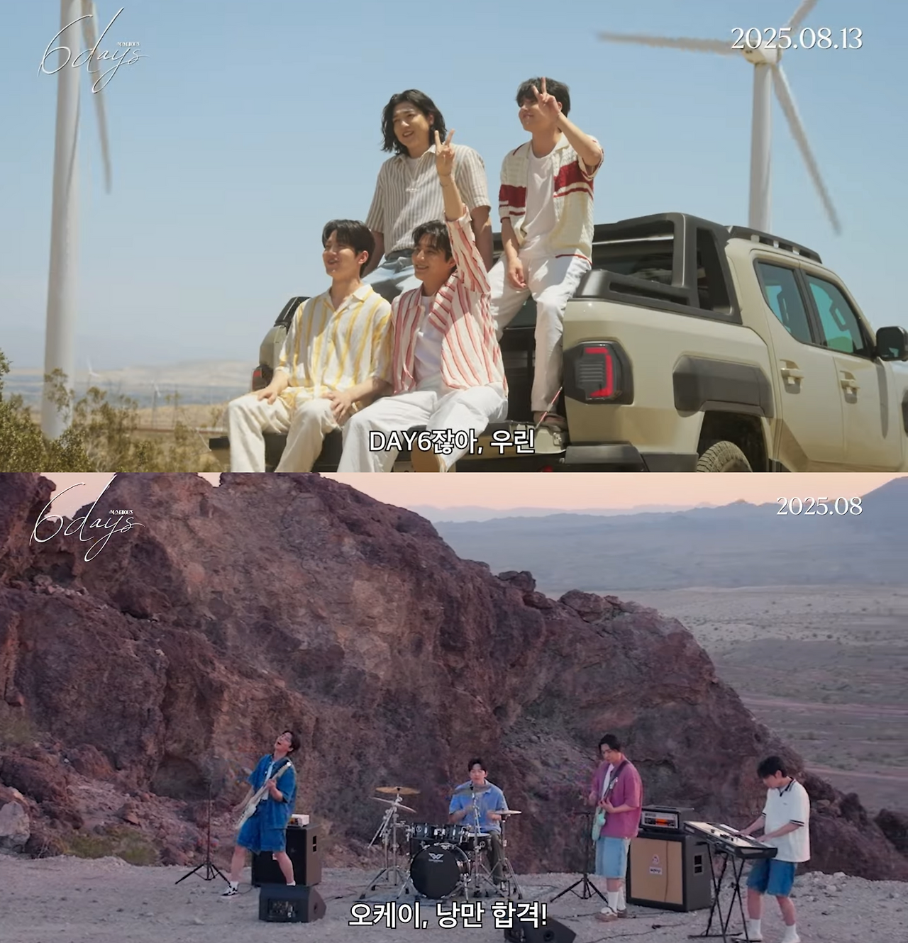 그러나 이후 공개된 예고편은 예상과는 달리, 무계획으로 여행을 떠난 멤버들의 모습으로 시작되었다. <한 페이지가 될 수 있게>가 흘러나오며 미국에서 휴가를 즐기는 것도 잠시 히치하이킹을 시도하고 힘을 합쳐 고장난 차를 움직이는 등 다이내믹한 장면이 펼쳐졌다. ‘데이식스가 연기를 한다고?’ 처음에는 리얼리티와 픽션을 오가는 듯한 스토리를 보고 당황스러우면서도 웃음이 났다.