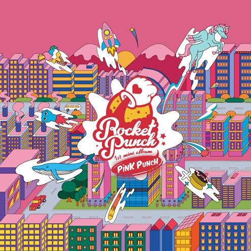 깔끔하고 심플한 디자인을 선호해왔던 울림 선배 그룹들과 달리 로켓펀치의 앨범 커버는 풍부한 일러스트가 삽입되어 꽤나 다채로운 디자인이다. 그러나 그중에서도 특히 눈에 띄는 색이 있다. 바로 앨범명이자 인트로 제목이기도 한 ‘PINK PUNCH’의 ‘PINK’. 하늘부터 산봉우리, 건물까지 전부 분홍색인데 각각의 채도는 미묘하게 다른 것이 특징이다. 인트로인 ‘PINK PUNCH’에서도 이와 비슷한 느낌을 받을 수 있는데, 신비로운 분위기의 전주를 지나 ‘빔밤붐’의 종소리와 함께 강렬한 비트와 사운드로 반전되는 구성은 앨범 커버처럼 다채로운 느낌을 준다. 로켓펀치는 데뷔 쇼케이스에서 ‘PINK’를 통해 그들의 밝은 에너지를 표현할 것이라 전했다. 앨범 커버 속의 각각 다른 채도의 ‘PINK’, 그리고 인트로의 반전으로 선보이는 다양한 분위기의 비트와 사운드는, 같은 에너지 그러나 멤버마다 다른 결의 에너지를 다채롭고 신선하게 보여주겠다는 로켓펀치의 포부를 함축한 요소들로 해석할 수 있다.