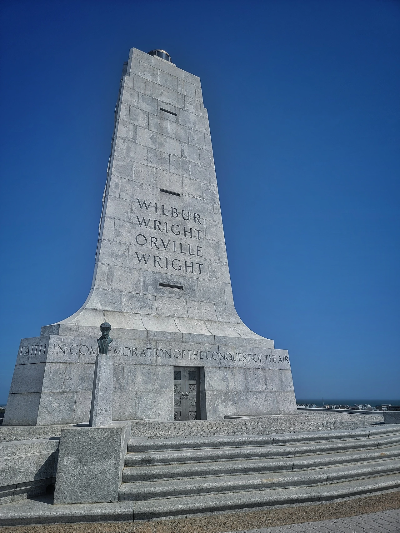 우선 라이트 형제가 최초의 비행을 했던 곳을 찾았다. National Memorial Monument (국립기념공원)으로 지정하여 거대한 탑을 세우고 최초 비행했던 곳을 보존하여 기념하고 있었다.