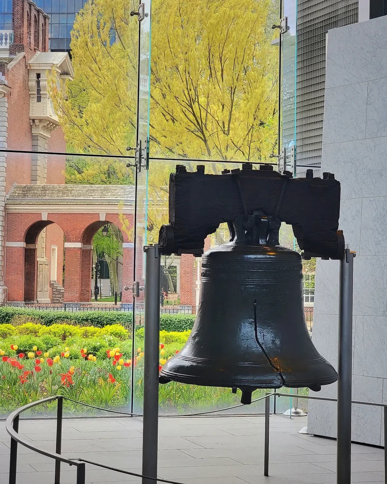 자유의 종이 만들어지고 미국역사에 한페이지를 만들어 가는 과정이 길게 자료들과 전시되어 있는 홀을 따라가니 그 끝에 자유의 종이 전시되어 있었다. 예전 경주에서 보던 신종들과 비교하니 크기는 초라한데도 뭔가 카리스마가 나온다고 할까? 위풍당당한 모습이었다. 뒤유리창으로 보이는 인디펜던스홀이 그 위엄을 더하고 있었다.
