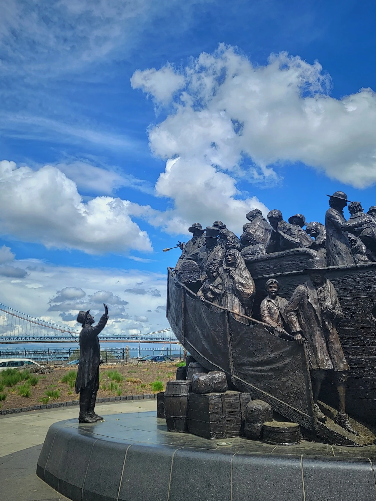 일인당 왕복 6달러, 어짜피 낼 다리통행료보다 저렴했다. 종착역에서 출발하는 기차라 그런지 비어있는 자리가 많았다. 운전을 안하니 덕분에 편히 앉아 뉴저지의 주택가를 볼 수 있었다. 기차는 갑자기 땅밑으로 들어갔다. 아하! 강을 건너나보다..하는 순간, 갑자기 창문으로 햇살이 비추더니 기차는 강위에 있었다. 넓은 델라웨어강을 시원스레 차창에 비추며 힘차게 강을 다리위로 건너가는 것이었다. 박자맞춘 기차의 도강소리는 창밖에 도도한 강물과 구름둥둥 뜬 푸른하늘에 박자를 넣어 가슴속을 뻥뚫고 있었다.