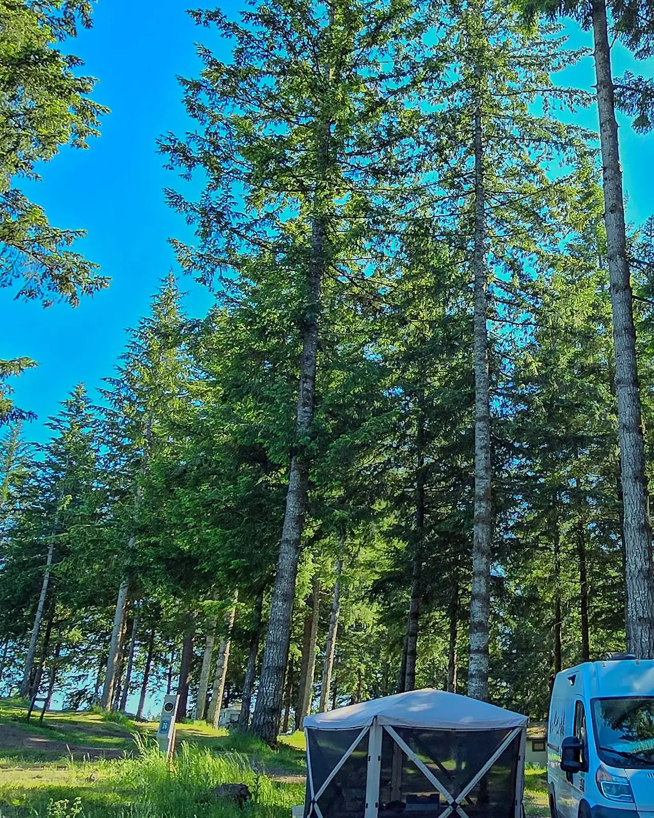 워싱턴주에 들어왔다. 아직까지 더위는 전혀없고 약간은 쌀쌀하다는 느낌을 더 많이 준다. 새로운 RV파크에 차를 세우고 옆에 스크린텐트도 치고 수도, 전기를 연결하여 또 살아갈 공간을 만든다. 여기서는 일주일을 보내고 다음 RV 파크로 넘어갈 예정이다. 키큰 나무들로 둘러싸인 RV파크는 약간은 나이를 먹은듯 여기저기 오래된흔적들이 보인다. 하지만 내가 생활하는데 불편함은 전혀없다.