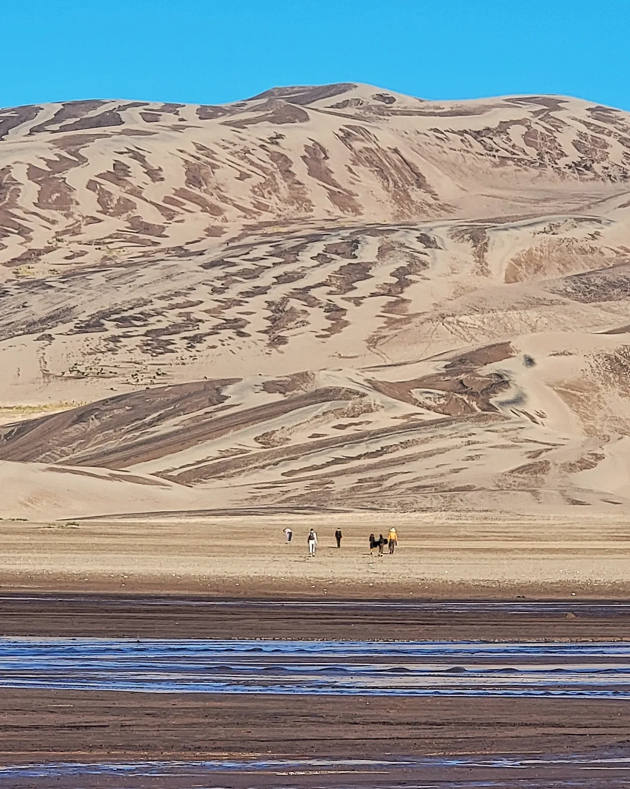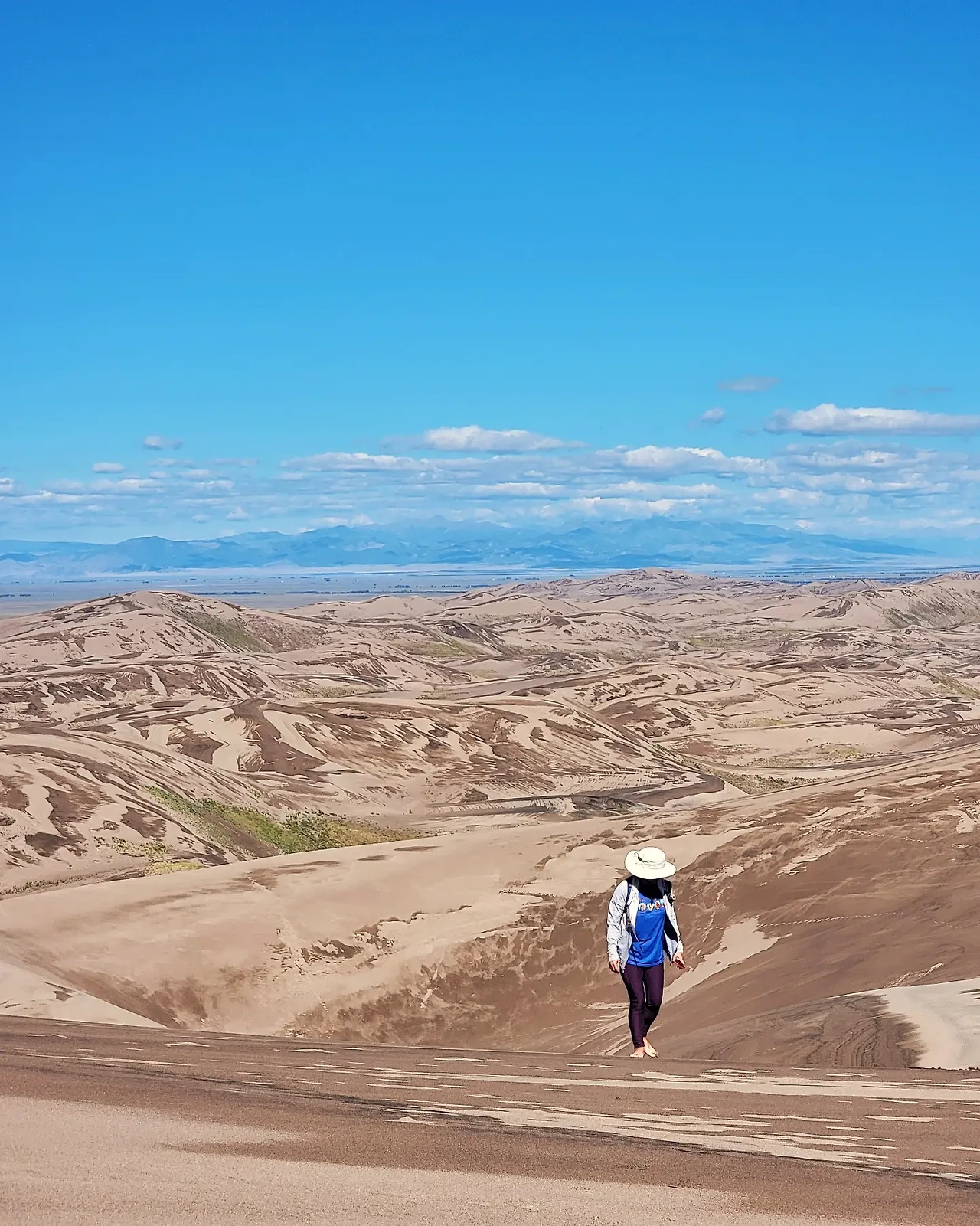 정상에 올라서 모래산을 오르지 않으면 못 볼, 뒤편에 숨어있는 모래언덕들을 바라보다 남들의 발자욱이 없는 곳만 골라서 내려왔습니다. 경사는 심했지만 모래라 그런지 할만하더라구요. 예전 스노우슈잉할 때 눈 덮인 경사를 내려오는 기분과 부드러운 모래 경사를 내려오는 기분이 매우 흡사하더라구요.