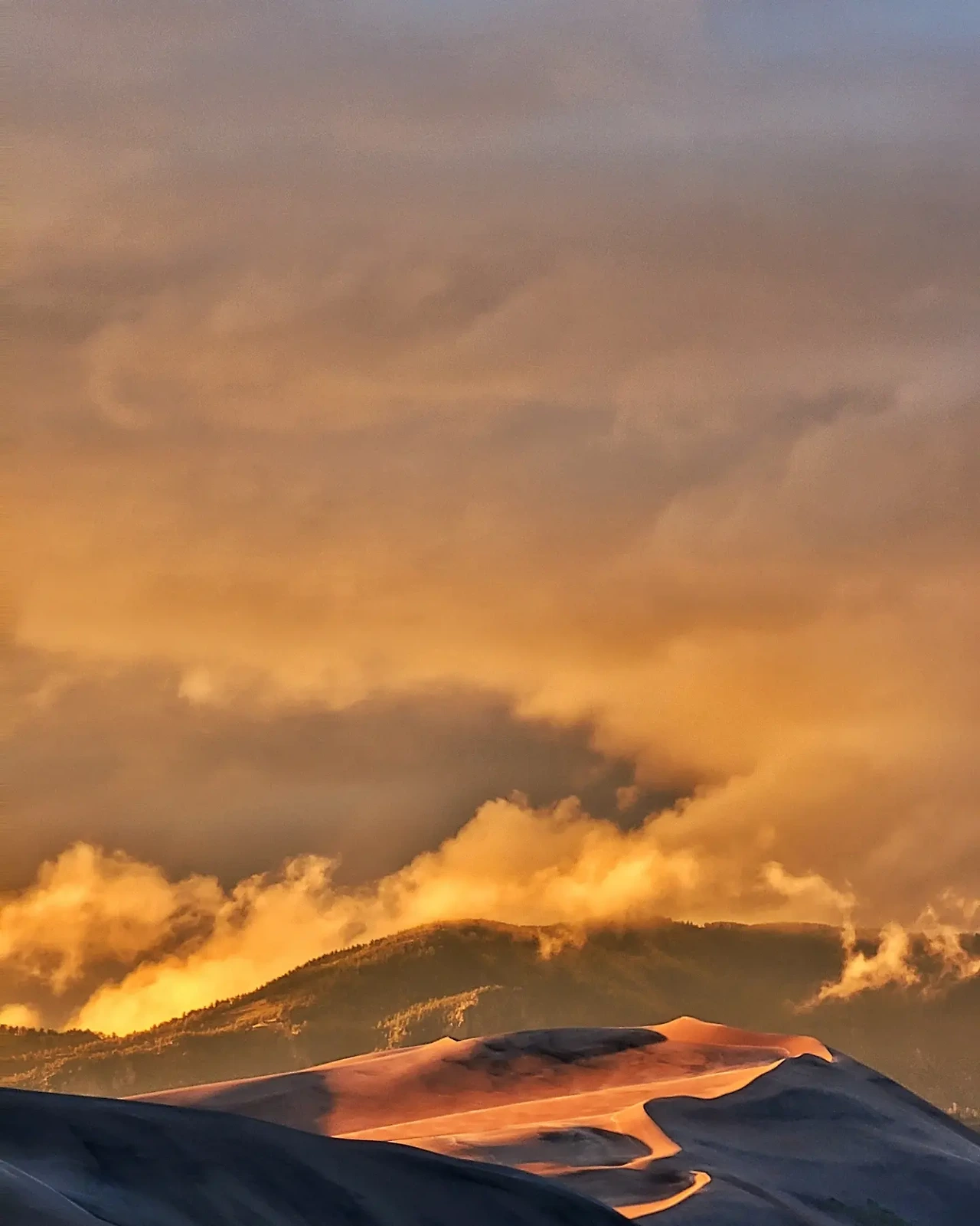 콜로라도주에 있는 그레이트샌드듄 국립공원입니다. 제 버킷리스트에 올라있던 곳 중의 하나였습니다. 얼마나 크길래 그럴까하구요. 도착하는 날 날씨가 안좋아 비가 내리다 멈추길 반복하더니 하늘이 빛의 요술을 보이더라구요.