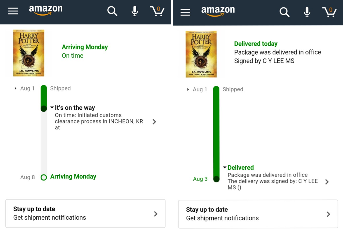 매일매일 아마존 쇼핑 앱에 들어가서 어디쯤 오고 있나 멀리 오는 길에 분실되지는 않을까