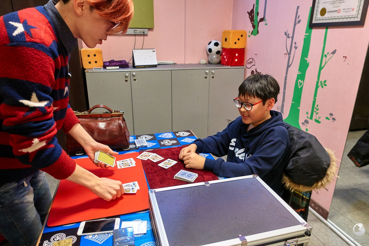 마술학원에 상담전화를 한 사람의 단골 질문이다. 피아노 학원이나 미술 학원에 전화를 해서 '커리큘럼'을 물어보는 일은 흔치 않다. 어렸을 때 학교에서 음악과 미술을 배우면서 대략 어떻게 진행되는지 몸소 체험한 이유도 있다. 어린 시절 학원을 다니며 직접 체험한 이유도 있을 것이다. 하지만 마술은 학교에서 배우는 과목도 아닐뿐더러 너무 생소한 종목이라서 무엇을 배우는지 감을 잡지 못한다. 그동안 알던 마술은 '추석이나 설에 TV에서 하는 마술쇼가 전부'였으니 말이다.