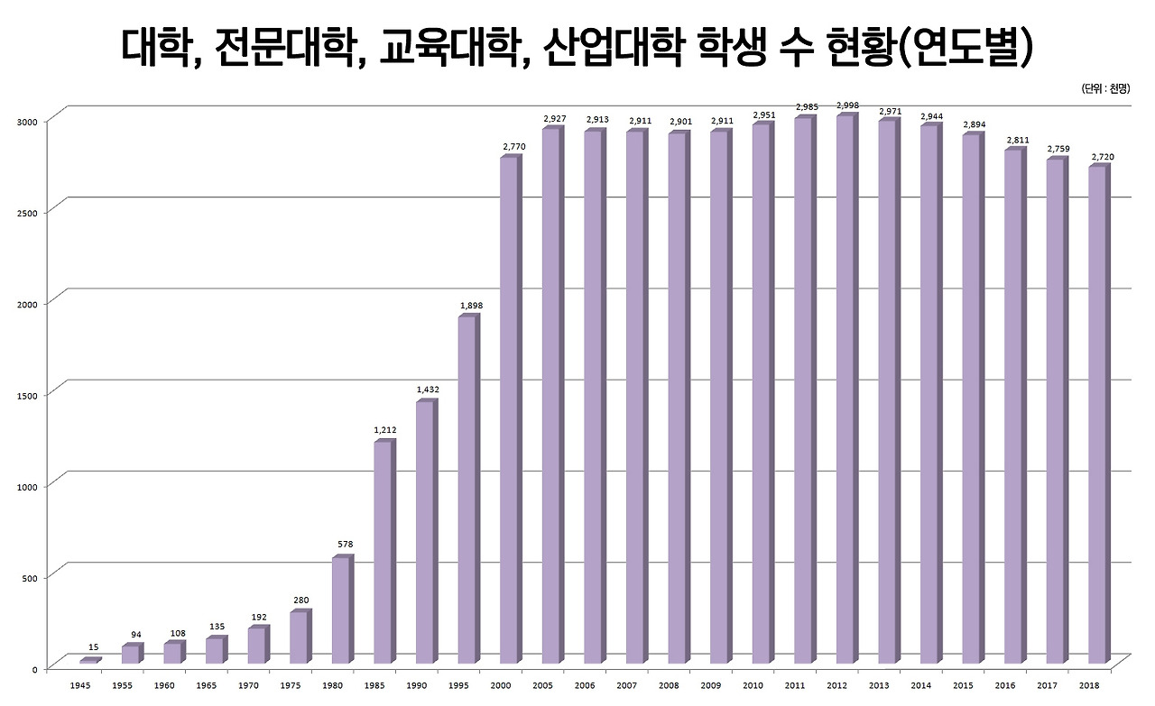 토드 로즈는 개개인성을 위한 시스템으로 탈바꿈하기 위해, 위의 3가지 개념을 채택해야 한다고 한다. 대학의 경우 과도한 수업료를 지불하고 4년의 시간 동안 일정 학점 이상 이수해야지만 학위를 받을 수 있다. 과거 1975년은 28만 명이었던 대학생 수는 1985년을 기점으로 큰 폭으로 증가합니다. 2018년 기준 다소 감소되긴 했지만 270만 명이며 1975년과 비교해서 약 10배 증가했다. 그에 반해 대기업 경쟁률은 38.5:1이고, 공무원 경쟁률은 2019년 3월 기준 39.2:1이다. 특별한 방법이 없는 한 기업은 줄 세우기 방식으로 직원을 채용할 수밖에 없다. 모든 스펙을 합치고, 평균을 통해 `인재`를 등용한다 생각한다.