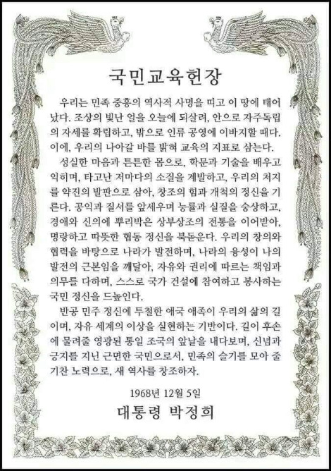 우리나라는 경우는 어떨까? 1883년 고종황제가 보빙사라는 외교 사절단을 만들어 미국에 파견했다. 그 후 조선 후기에 우리나라 최초의 근대적 공립학교인 육영공원이 설립되었다. 입학조건을 양반으로 한정하며 국민 교육 기관으로 발전하지 못하고 설립 8년 만인 1894년에 폐교되었다. 이후 동학농민운동, 갑오개혁, 을미사변을 지나 1910년 일제가 국권을 침탈당한다. 프로이센 교육을 적극적으로 받아들인 일본의 식민 지배를 우리나라에 프로이센 평균주의 교육이 정착된 건 당연지사였다. 해방 후 독재 정권이 시작되었고, 박정히 前 대통령이 공표한 국민교육헌장을 외우게 했다.