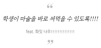 과거 매직캣 마술학원에서 취미반 수업에는 특이한 일이 있었다. 마술을 배운 모든 아이가 똑.같.은. 멘트로 마술을 보여주는 것이 아닌가. 초등학생이 신문지를 찢으며 사회의 부조리를 말하고, 꽃향기를 맡으며 사랑을 읊조린다. 한번 상상해보라.