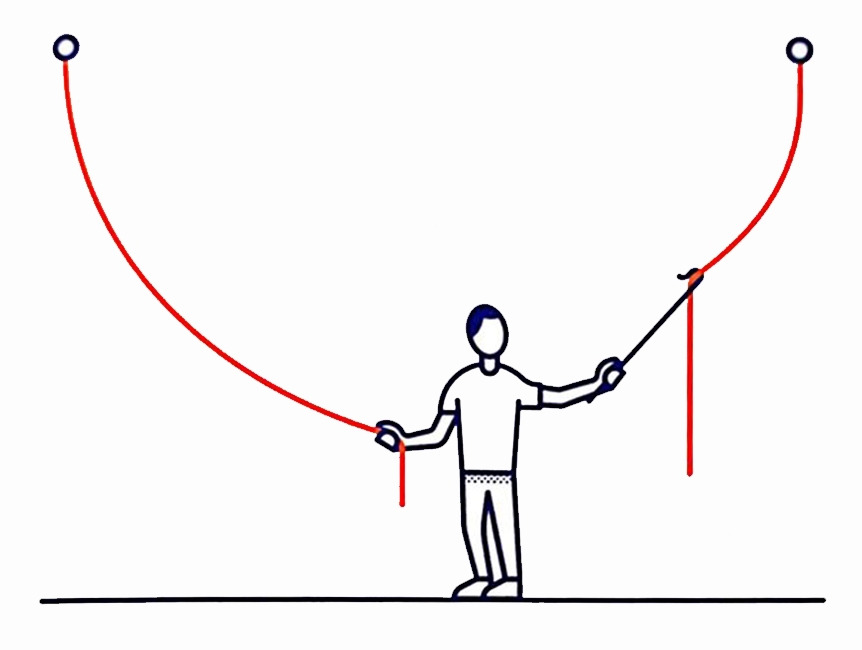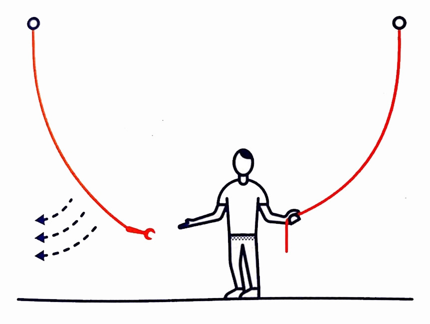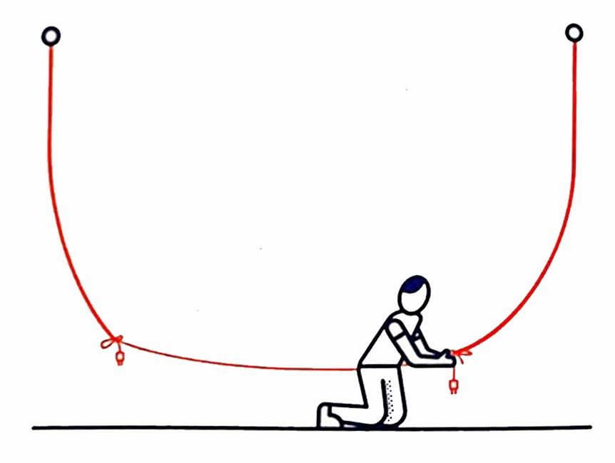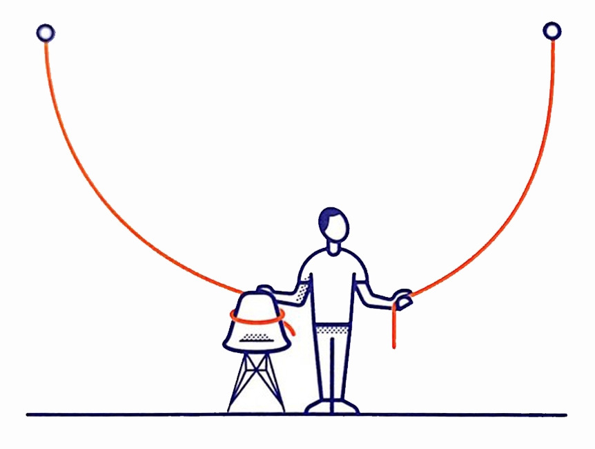한 쪽 줄을 의자에 묶고, 다른 줄을 가져와서 묶는 방법. 전기 연장선으로 중간 브릿지를 만드는 방법. 갈고리로 줄 하나를 당겨서 묶는 방법. 마지막으로 렌치를 추처럼 활용해서 그네처럼 흔들어서 묶는 방법이다. <생각이 돈이 되는 순간>의 저자 앨런 가넷은 줄을 묶을 수 있는 방법이 전부 '네 가지'라고 했는데, 이상하게 한 가지 방법이 눈에 더 보였다. 이 방법이 책에 소개되어 있지 않아서 오답이라고 생각했지만 오기가 발동했다. 줄을 가지고 책상 위에 올라가면 한 쪽 줄이 한계치까지 온 상태에 한 쪽 손에 잡힌다.