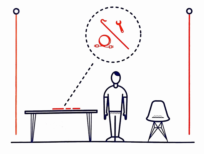 과연 천재의 섬광 순간을 곁은 것일까? 아니면 노력의 성과일까? 이는 심리학 연구에 활용되는 실험을 통해 알아볼 수 있다.4) 큰 방에 있다고 상상해보자. 의자와 책상 위에 한 쪽이 갈고리로 된 막대, 렌치, 전기 연장선이 있다. 양쪽에는 천장부터 내려오는 긴 줄이 바닥 약간 위까지 늘어져 있다.
