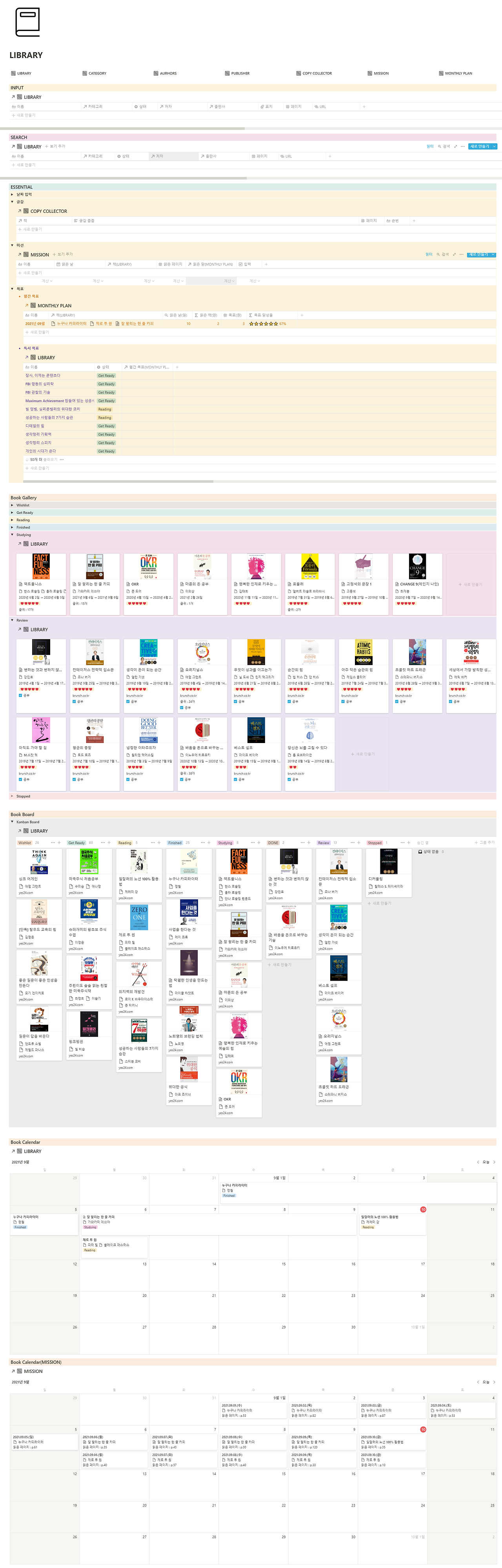 스마트 도서관은 어떤 책을 샀고, 읽고 있고, 공부하고, 서평을 썼는지 직관적으로 볼 수 있습니다. 책 페이지 안에는 주요 문구나 책 내용이 정리되어 있습니다. 언제 책을 읽었는지, 하루에 몇 페이지를 읽었는지를 알 수 있습니다. 이것을 통해서 한 달 평균 읽은 책 권수와 목표에 도달했는지를 직관적으로 파악할 수 있습니다.