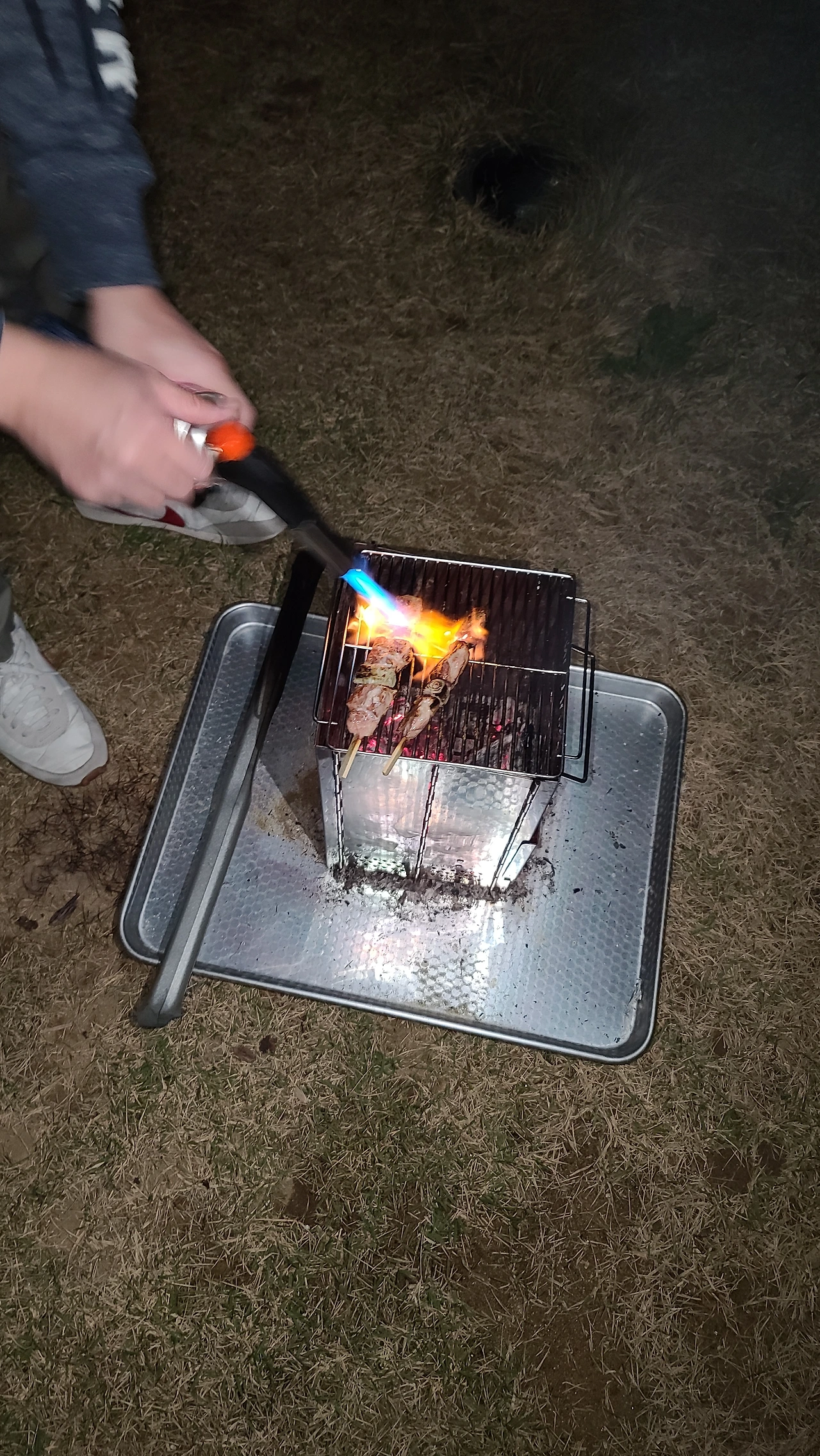 기분이 좀 풀어졌는지 남편은 평소라면 귀찮아할 것들을 연달아 조용히 하기 시작했다. 토치로 바람에 꺼져가는 불을 피우고 피우고... 꽤 많은 시도 끝에 불이 타올랐다.