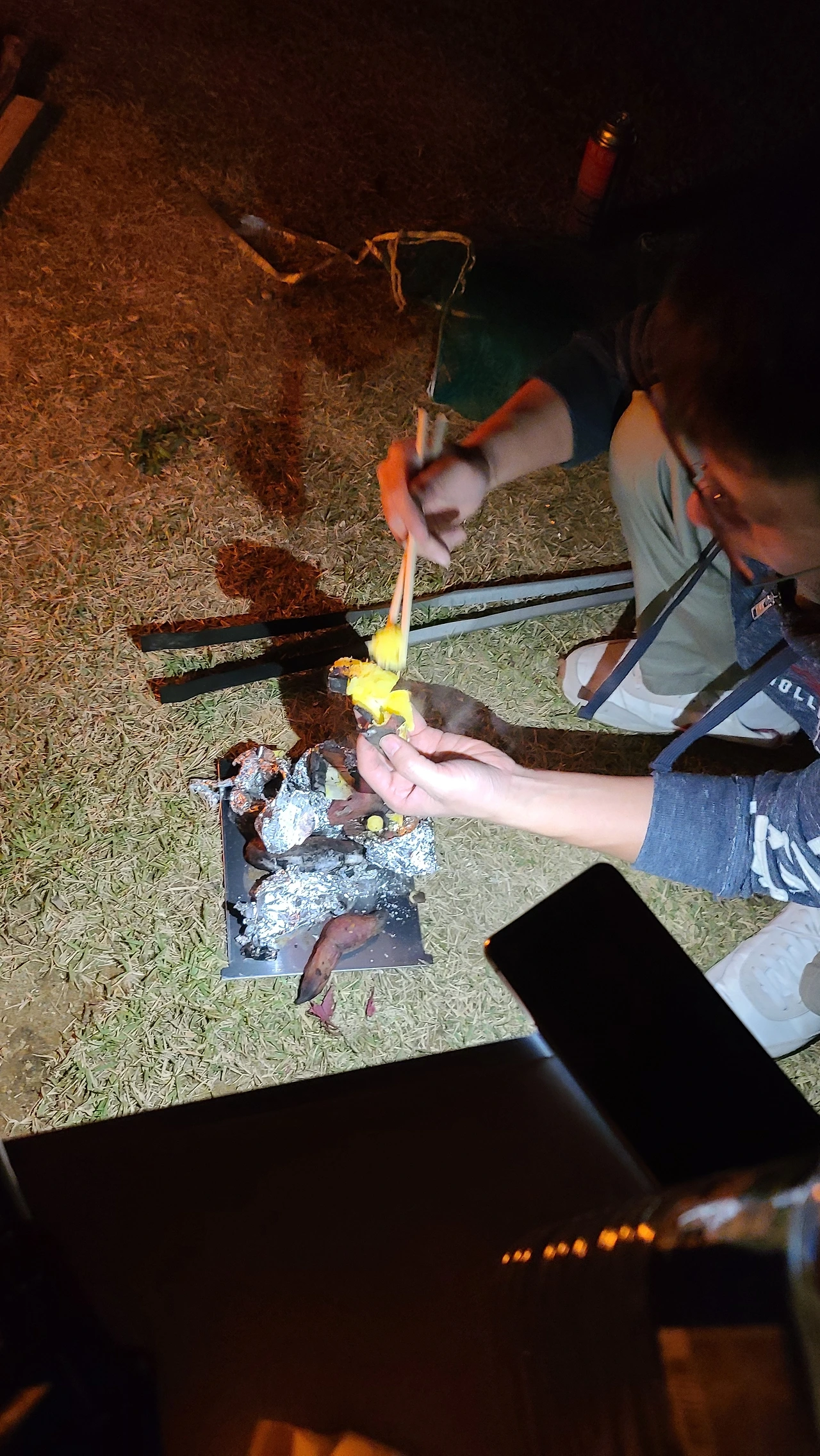 오로라 가루를 넣자 아이들이 흥분하기 시작했다. 불꽃은 초록색으로 타올랐고, 불꽃 가루가 여기저기 흩날리며 어두운 밤하늘을 수놓았다. 핸드폰으로 잔잔한 포크송을 재생시켜 들으며 아이들과 부둥켜안고 체온을 나누니 아이들이 행복해했다. 남편도 기분이 보들 해졌는지 제법 다정한 언어를 구사하기 시작했다. 그리고 우리를 위해 고구마에 닭갈비까지 구워줬다.