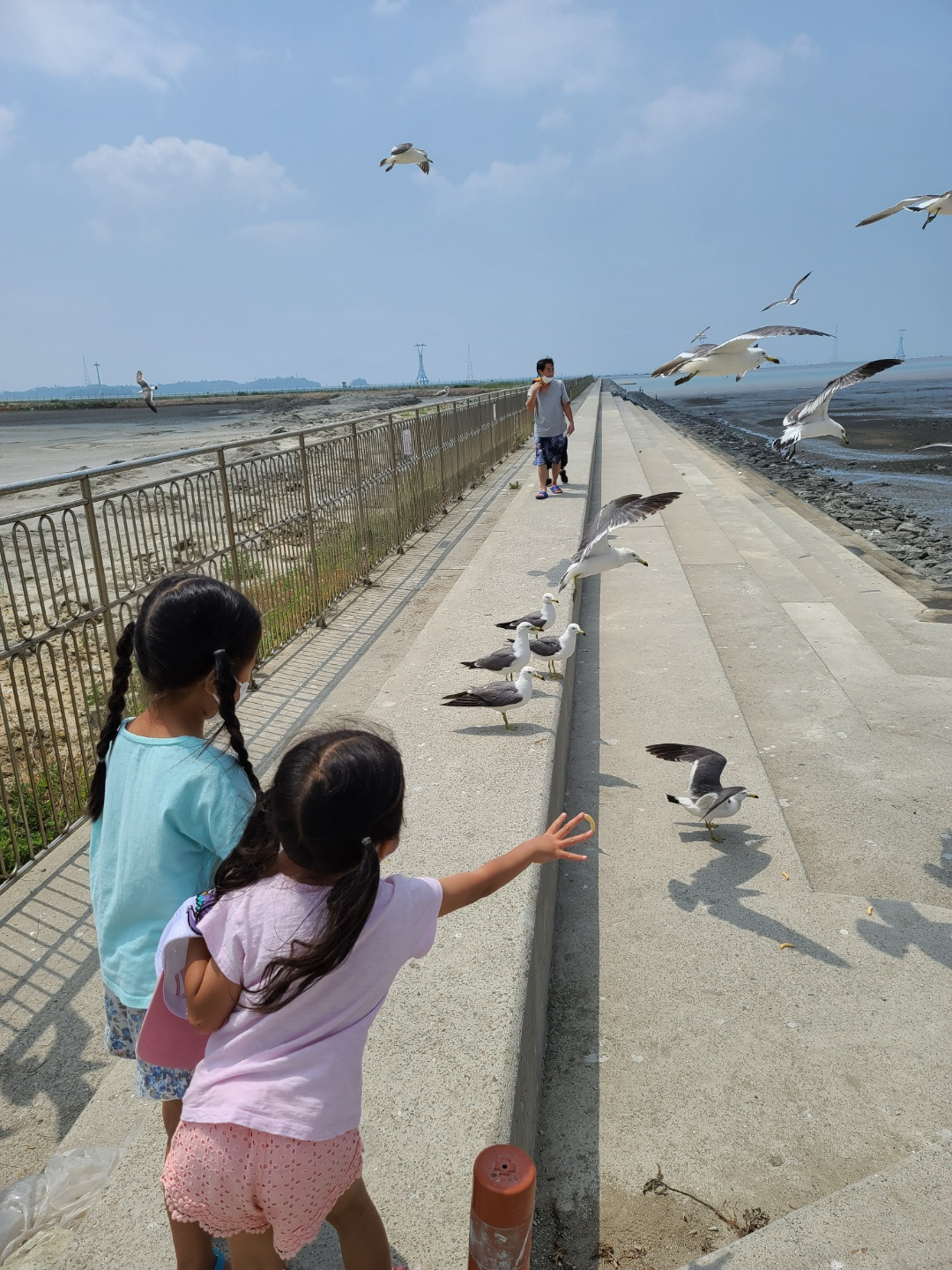 갈매기들은 처음에는 몸을 피하더니 아이들이 새우깡을 던져주자 이내 와서 금새 다 먹어버렸다. 그 과정이 즐거웠는지 아이들은 새우깡을 자신들이 먹는 대신 갈매기에게 다 줘버렸는데 하나도 아까워하지 않았다.