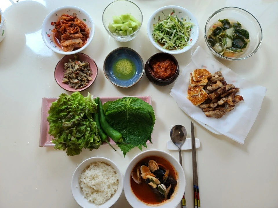 조미김, 구이김+들기름 간장, 맛소금 솔솔 계란 프라이, 맛소금 솔솔 두부구이, *명란 참치액 계란찜, 갓 볶은 맛소금 솔솔 감자채 볶음, 참치액 계란말이, 갓 한 감자전(얇게 저민 감자 맛소금 솔솔 튀김가루 물에 넣어 부친 것), 간장 오징어채 볶음과 간장 어묵볶음, 인스턴트 음식(비비고 미역국, 라면, 짜파게티, 삼각김밥, 가락국수, 아이스크림, 떡갈비, 꼬마 돈가스), 국(미역국, 감자 계란국, 백종원 물떡 어묵탕, 유명 브랜드 갈비탕, 소고기 뭇국), 빵(소금빵, 바케트+생크림, 식빵+딸기잼, 멜론빵), 별미(닭봉조림, 샤브샤브의 떡과 고기와 국물, 베이컨계란감자채전), 본죽 소고기 야채죽+본죽 장조림, *치킨마요 소스 비빔밥