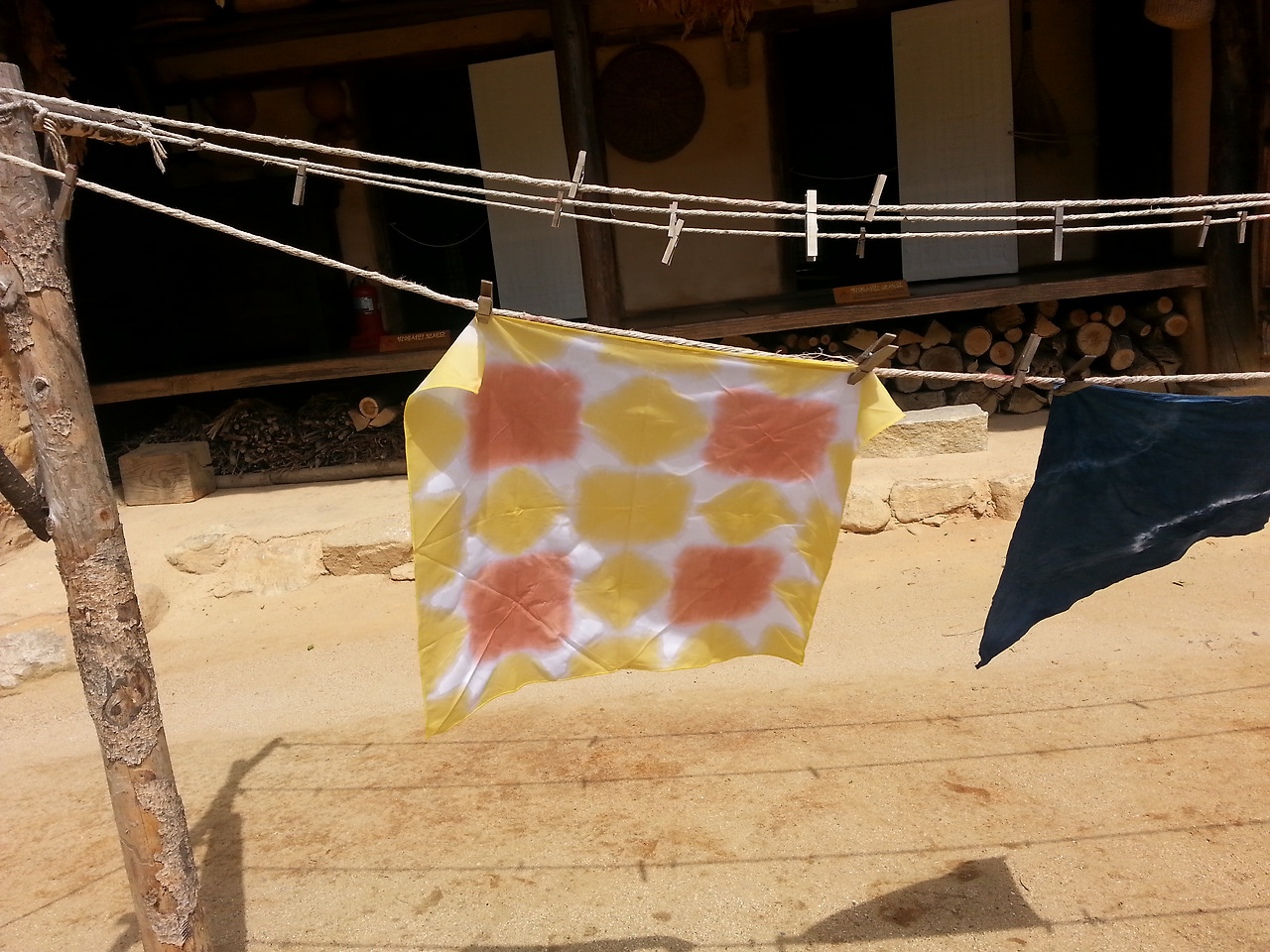 딸아이가 제일 좋아했던 천연염료로 손수건 염색하기 체험. 잘 말려서 가지고 왔다. (아쉽게도 무료 아님)