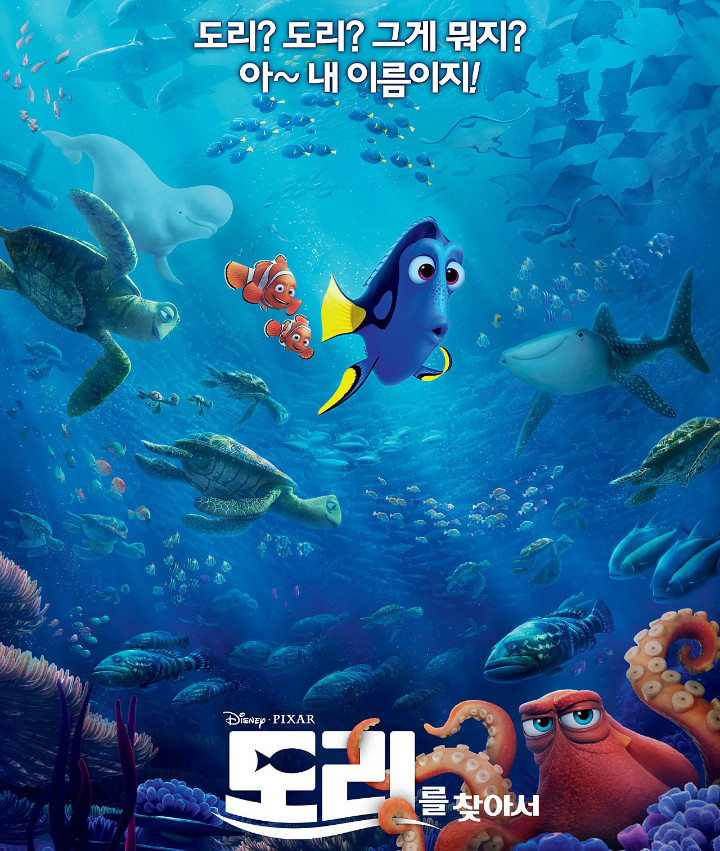 푹푹 찌는 더위를 피해 영화관이 있는 대형 쇼핑몰을 찾았다. 영화관에서도 단연 돋보이는 푸른 바다 빛으로 시선을 끄는 '도리를 찾아서'.