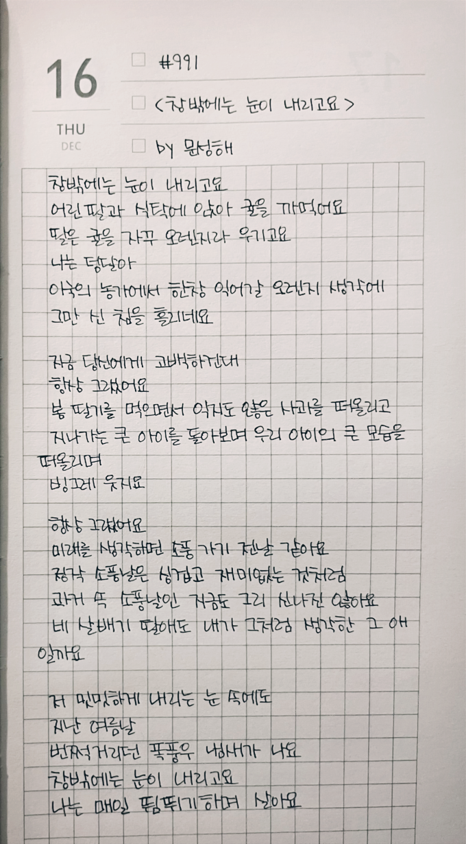#991_창 밖에는 눈이 내리고요