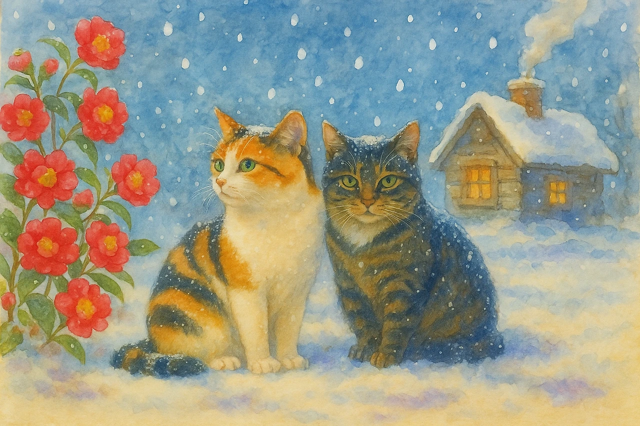 이 둘은 이 숲의 가장 깊은 곳, 하얀 눈밭 위에서 불꽃처럼 피어난 설중홍(雪中紅), 즉 눈 속의 붉은 동백꽃들을 지키는 아주 중요한 임무를 맡은 설중홍호쌍묘(雪中紅 護雙猫)였답니다.