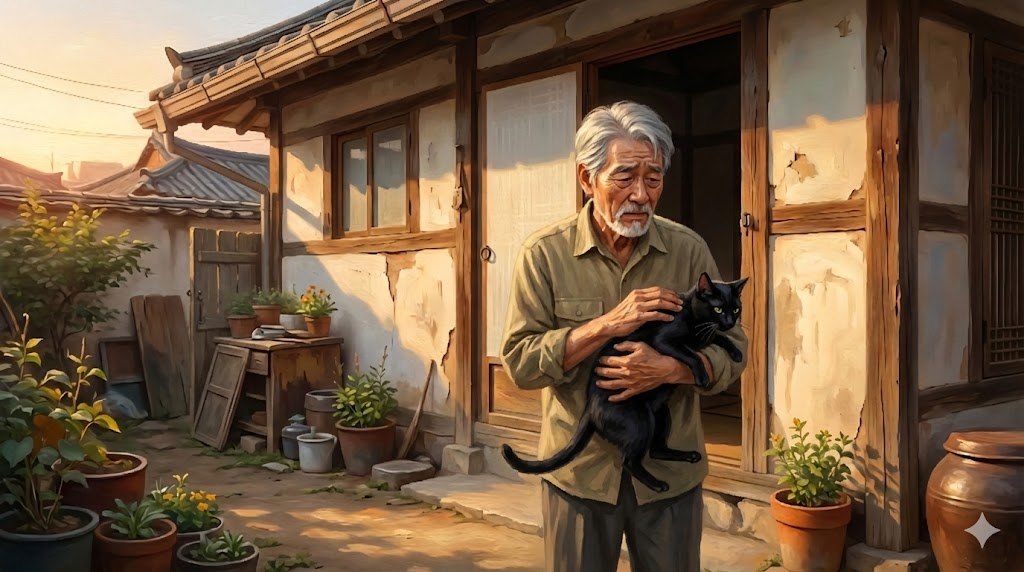 정규 씨는 깜숙이를 번쩍 들어 품에 안고 등을 쓰다듬었습니다.