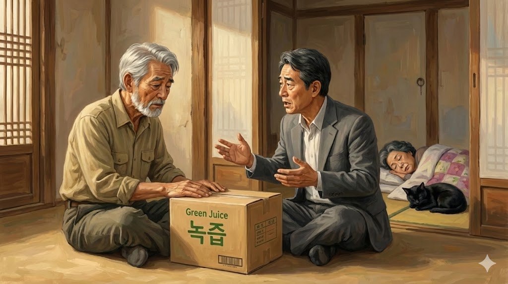 “아버지, 이거 유기농 녹즙이에요. 암 환자한테 좋대요. 식전 공복에 엄마랑 하나씩 드세요. 엄마 간병하시려면 아버지도 건강 챙기셔야 해요.”