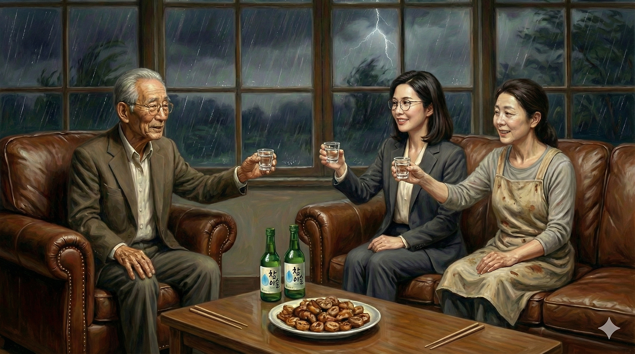 서재는 순식간에 슬픔의 파도로 가득 찼지만, 그것은 아까 자식들이 남기고 간 불쾌한 감정과는 다른, 아주 따뜻하고 깊은 슬픔이었다.