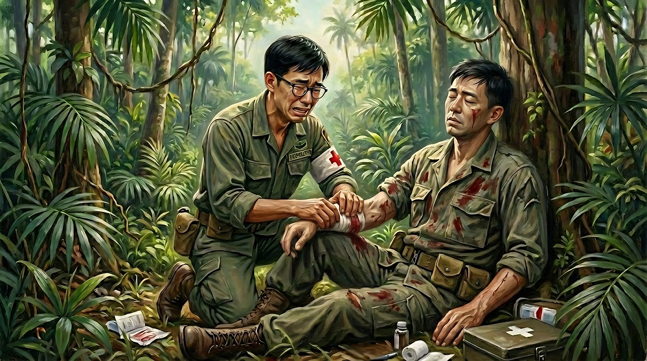 “전투병으로 배치받았지만, 틈만 나면 의무병을 졸졸 따라다녔어. 어깨너머로 지혈하는 법, 소독하는 법을 배웠지. 다행히 내 간절함이 통했는지, 의무병 고참이 의무병 보조 자리에 결원이 생겼을 때 상부에 요청해 나를 자기 밑으로 데려갔지. 난 부상당한 전우들을 치료하며, 밀림 속에서도 의사의 꿈을 놓지 않으려고 발버둥 쳤어.”