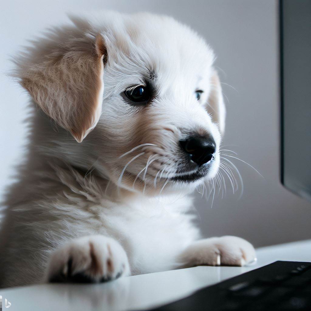 bing.com/create, 프롬프트 : 하얀 벽 앞에 있는 하얀 털을 가진 강아지(글 배경/그림은 모두 bing , DALL E를 사용하여 생성하였습니다)