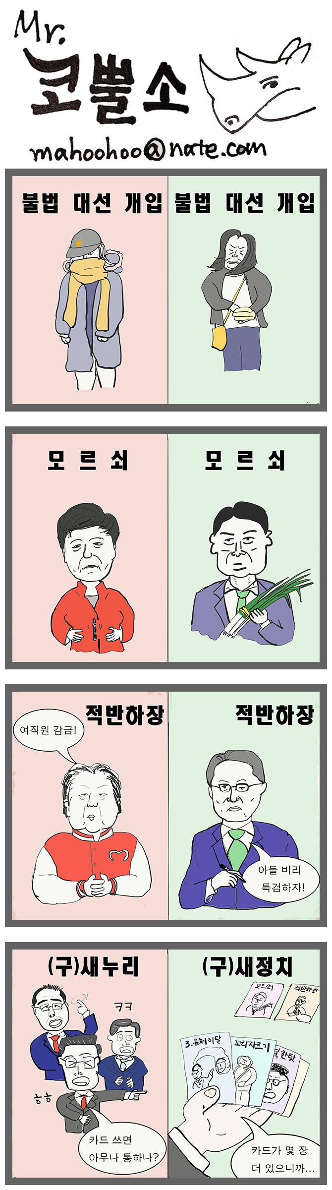 그럼에도 불구하고 이 사건에 대한 국민의당의 상황인식이나 대처방식은 수없이 많이 봤던 익숙한 방식들입니다. 이런 상황대처는 물론 유일한 유경험자인 새누리당계열의 전례에서 보고 배웠다고 밖에는 말할수 없겠습니다. 그렇다면 과연 새정치라는 것은 무엇인지 의문이 듭니다. 현재로서는 새누리 계열들이 노련하게 이런 상황을 빠져나것과는 달리 미숙하게(?) 빠져나가지 못할 것 같다는 점 말고는 다른 점이 없어보입니다. 애초에 본인들도 새정치가 뭔지 몰랐던 것 일수도 있겠습니다.