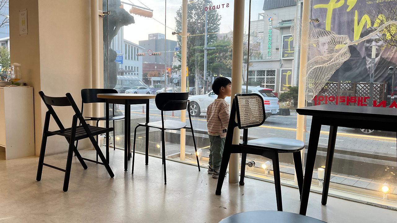 서울에서 있을 강의 때문에 새벽같이 나갔던 엄마가 기차로 돌아오는 시간에 맞춰 역에 나가있었다. 엄마랑 우주랑 백화점에서 내일 만날 친구 아기의 옷이랑 우주 티셔츠 몇 장 사고 아는 동생이 운영하는 카페로 갔다. 재즈가 넘치도록 흘러나오는 공간에 앉아 오랜만에 동생이랑 못다 한 이야기를 나눴다. 정신없이 돌아다니고 자꾸 밖으로 나가려는 우주를 엄마가 돌봐줬다. 덕분에 공간도, 대화도 생각보다 더 오래 누릴 수 있었다.
