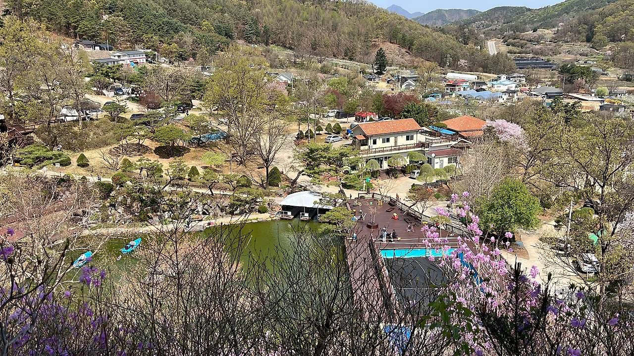 전에는 수목원이었던 곳이 캠핑장이 된 양평수목원캠핑장은 산책로가 기가 막히게 조성되어 있다. 이리저리 구경하며 걸어 다니기를 좋아하는 네 살은 우리를 계속 높고 높은 산책로로 인도했다. 덕분에 캠핑장과 그 너머 동네까지 한눈에 내려다보이는 전망을 볼 수 있었다. 아직 벚꽃이 남아있어 알록달록 봄꽃과 함께 새 계절의 기운을 온몸으로 느꼈다.
