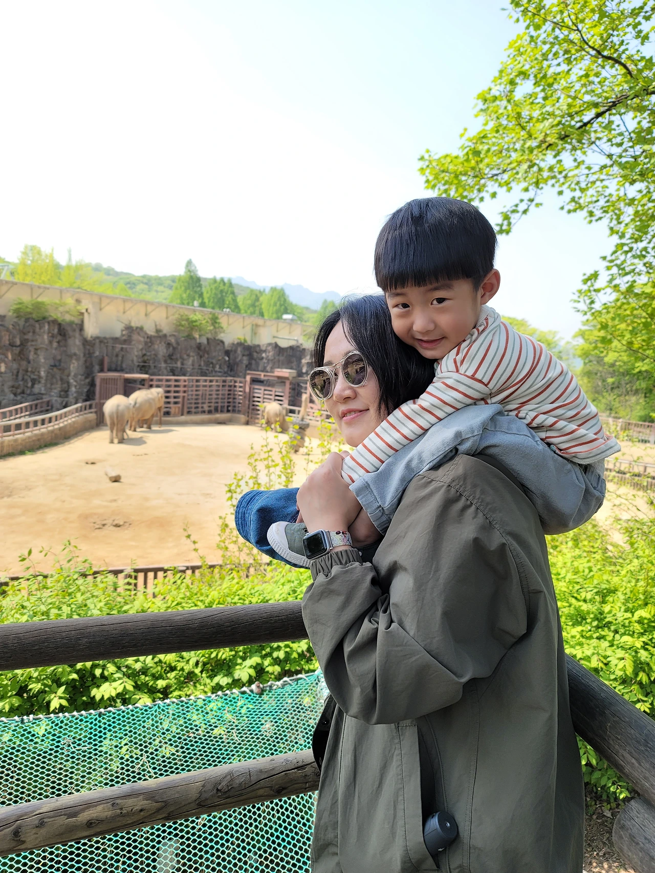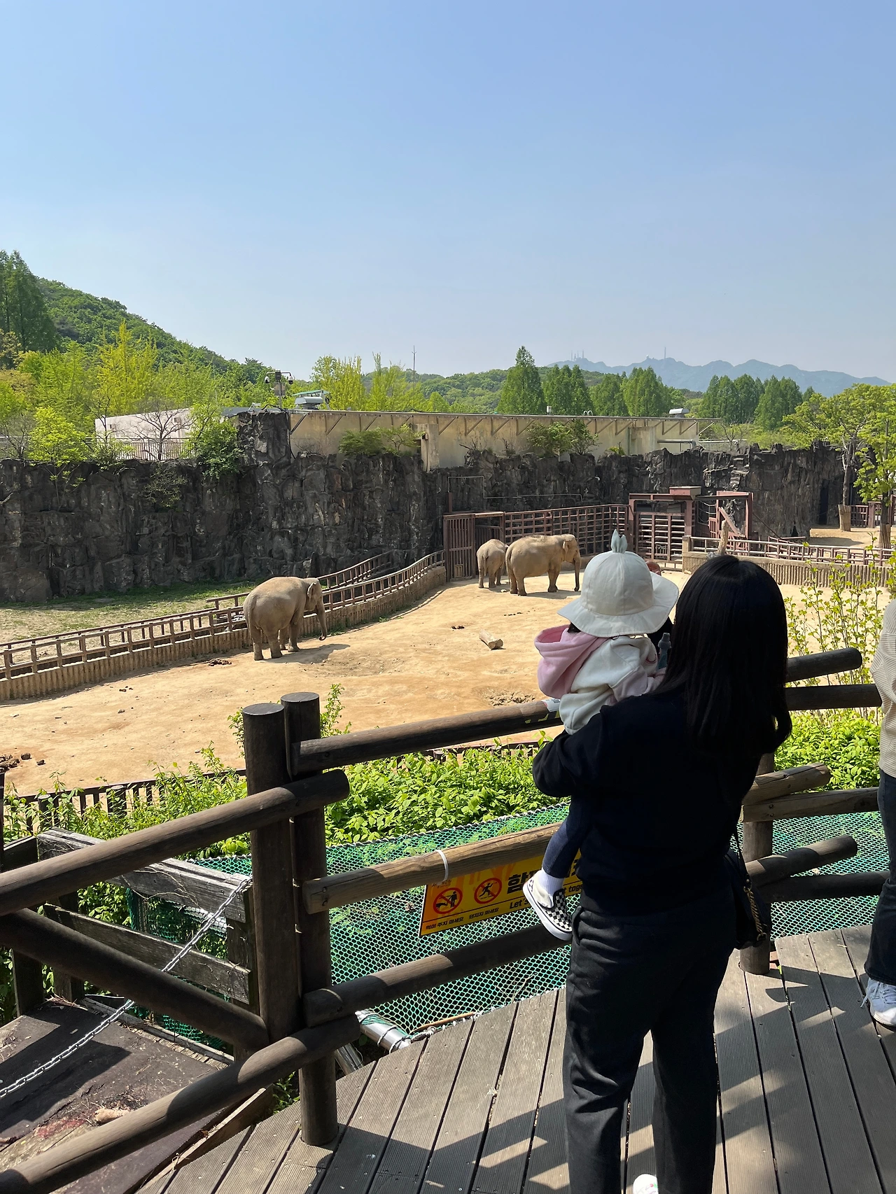 볕이 엄청 뜨거웠다. 기온이 20도였는데 여름 같이 느껴질 만큼 더웠다. 그래서 그런지 동물들도 그늘 속에 들어가 있어서 아마도 아이들은 동물을 찾아내지 못한 것 같다. 우리 네 살이 유독 흥미를 가지고 봤던 동물은 코끼리와 기린이었다. 그러고 보니 신체의 한 부분이 기이하게 긴 동물들이다. 그래서 신기한 걸까? 잘은 모르겠지만 한참 그 앞에 서서 떠나지 않았다. 코끼리 가족이 실내로 들어가 버린 뒤에야 돌아섰다.