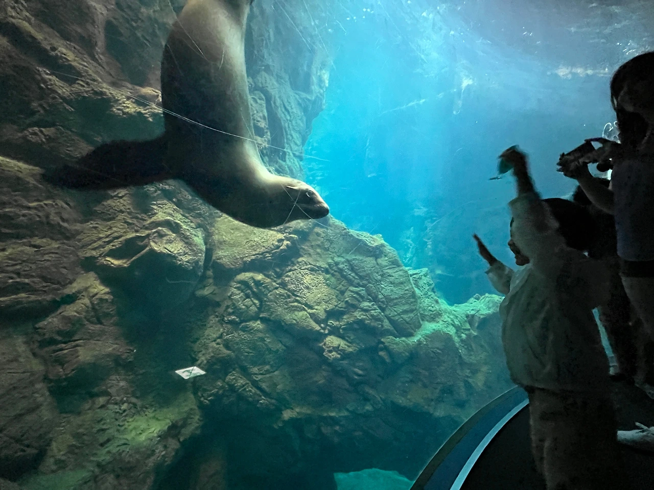 해수면 높이에서 부터 해양생물들을 만날 수 있었다. 가운데 가장 큰 수조를 두고 그 주변을 둘러 내려가도록 만들었는데, 깊이와 너비가 대단한 수조 속 동물들이 왠지 모르게 평화로워 보였다. 그중에 바다사자는 수조 밖의 관람객과 교감하기도 했다. 우리 집 네 살도 들고 있던 작은 물건을 따라 쫓아오는 바다사자와 한참 동안 놀다 왔다.
