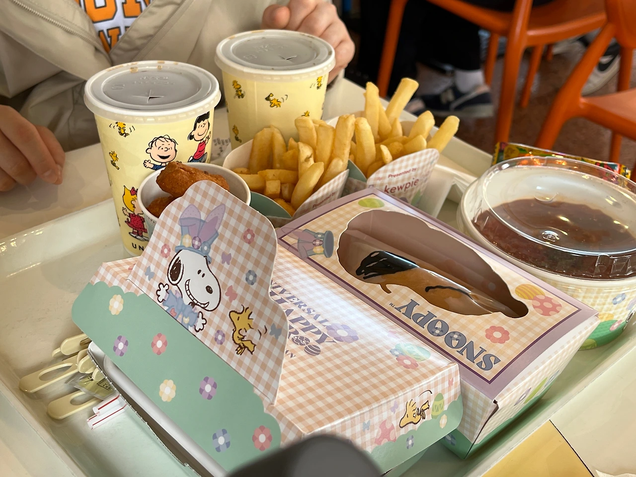 그 부근에 유아휴게실(수유, 기저귀교체)이 있어 편리했다. 스누피 어트랙션 옆에 위치한 스누피 식당(스누피 백롯 카페)에서 키즈메뉴도 판매하고 있고, 버거가 정말 맛있었다. 다른 곳보다 위치도 좋고 메뉴도 괜찮아서 두 번 방문 때 모두 여기서 점심을 먹었다.