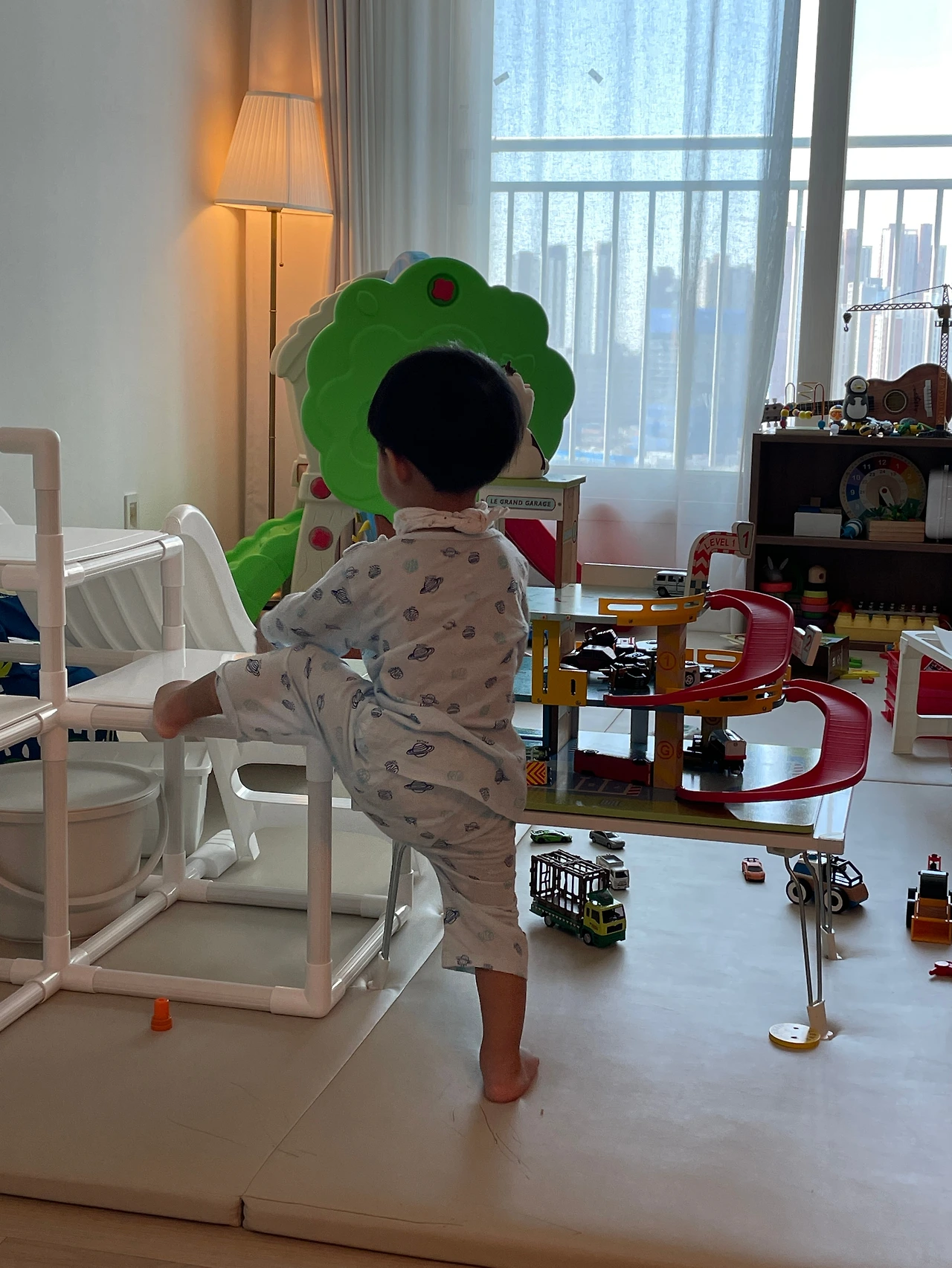 우주가 계속 단어를 발음해보려고 시도한다. 오늘은 딸기, 카트, 하트를 말했다. 아, 어, 으, 에 발음을 할 수 있는가 보다. 그리고 줄곧 알 수 없는 말로 떠든다. 그게 너무너무 귀엽다. 뭐라고 말하고 싶긴 한데 할 줄 아는 게 없으니 되는대로 말하는 걸까? 이 세상 귀여움이 아니다. 지난달쯤부터 놀고 싶으면 똑같은 장난감을 하나 더 가져와 내 손에 쥐어주곤 했는데 요즘은 무조건이다. 가장 많이 하는 게 자동차 놀이인데, 부릉부릉 소리를 내며 거실 곳곳을 돌아다니면 된다. 오늘은 그러다 문득 어릴 적 상상했던 장면이 떠올랐다. 인형놀이를 하고 있노라면 머릿속에 집과 차와 길 같은 것이 실제 있는 것처럼 상상이 되곤 했는데. 우주랑 자동차를 가지고 정글짐을 따라가다 보니 있지도 않은 찻길이 떠올라 옛날 생각이 났나 보다. 내 상상력 아직 죽지 않았어!