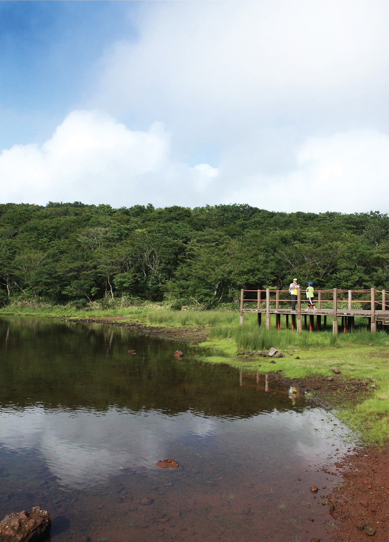 이곳에 충만한 한라산의 기운 덕분인지 기진맥진했던 몸도 금세 가뿐해진다. 호수의 가장자리를 따라 놓여있는 나무데크 길을 따라 호수 반대편까지 걸어가노라면 발길을 옮길 때마다 풍경이 달라져 감탄이 연발한다. 호수 바닥은 붉은 송이가 깔려있는데, 물이 맑아 올챙이들이 헤엄쳐 다니는 것이 보인다.