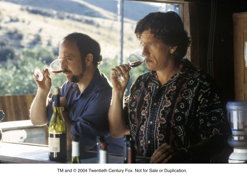 전처를 그리워하는 마일스는 그녀와 연어를 안주삼아 "오퍼스 원"을 마신 과거를 회상하며, 전처의 취향을 추앙한다. 왜 와인에 빠졌냐는 마일즈의 질문에 소믈리에 마야는 "사시카이아, 88년산!"이라고 지체 없이 대답한다. 영화의 클라이 막스는 마일스가 애지중지하여,(사실은 결혼기념 10주년에 마시려고 사놓은), 차마 따지 못하던 슈발블랑 61년 산을 의외의 장소에 따 먹어 버리는 웃기면서 슬픈 장면일 것이다. (스포라서 차마 이야기하지 못하겠다.)