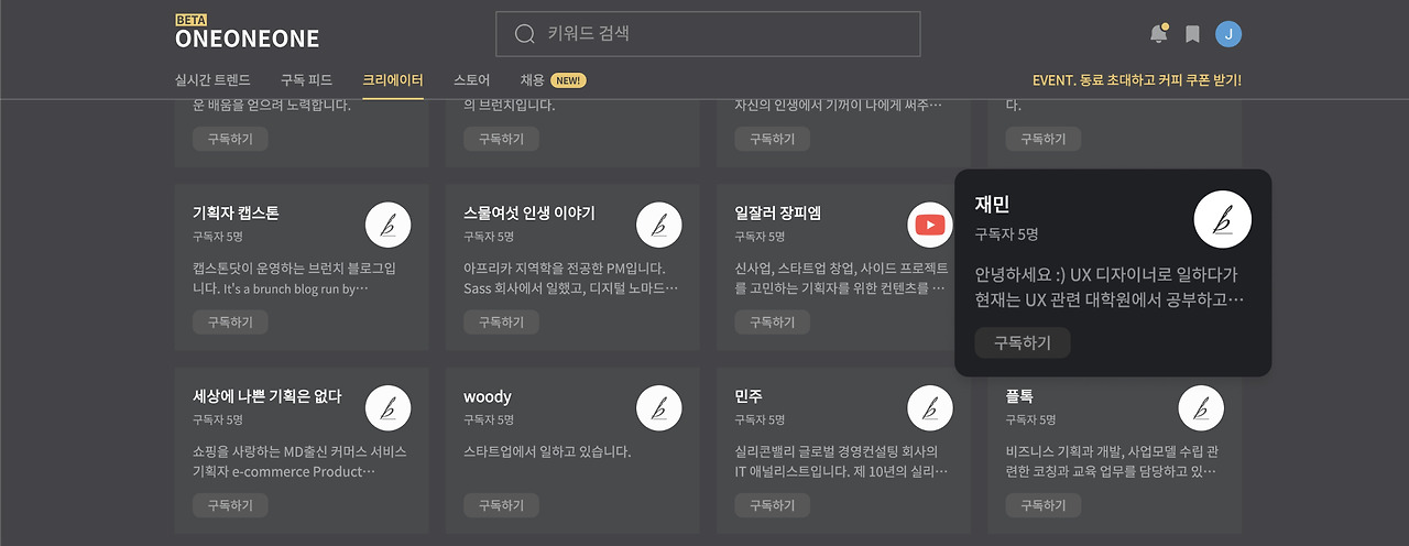 최근에 평소 일일 조회수보다 10배 많은 조회수가 찍혀서 확인해 봤더니, 일일일이라는 신규 플랫폼에서 내 브런치를 스크랩했던 것이었다. 처음에는 '이래도 되는 건가?' 싶은 생각이 들기도 했지만, 많은 사람들이 내 글을 볼 수 있는 건 좋은 기회라고 생각했다. (감사해요! 일일일) 아무튼 요즘에는 글을 쓰는 행위에 스트레스가 풀리는 것 같다. 다가오는 하반기에는 읽는 사람들도 고려해서 그들에게 도움이 되는 글을 쓰려고 노력해 볼 예정이다.