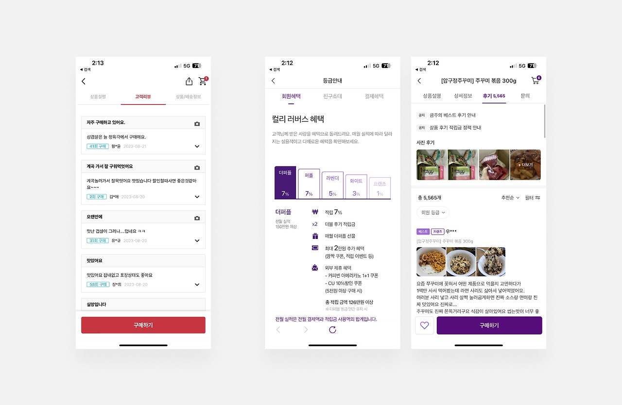 또한, 리뷰를 작성하는 고객이 서비스나 제품을 자주 사용하는 고객임을 나타내기 위해 사용자 프로필 주변에 구매 횟수 정보를 표시하는 <정육각>이나 회원 등급을 시각적으로 나타내는 <컬리>와 같은 사례도 사회 인지적 리워드를 제공하는 방식으로 볼 수 있다.