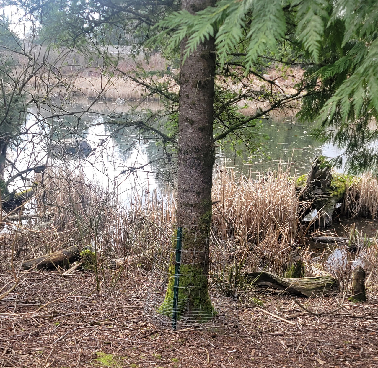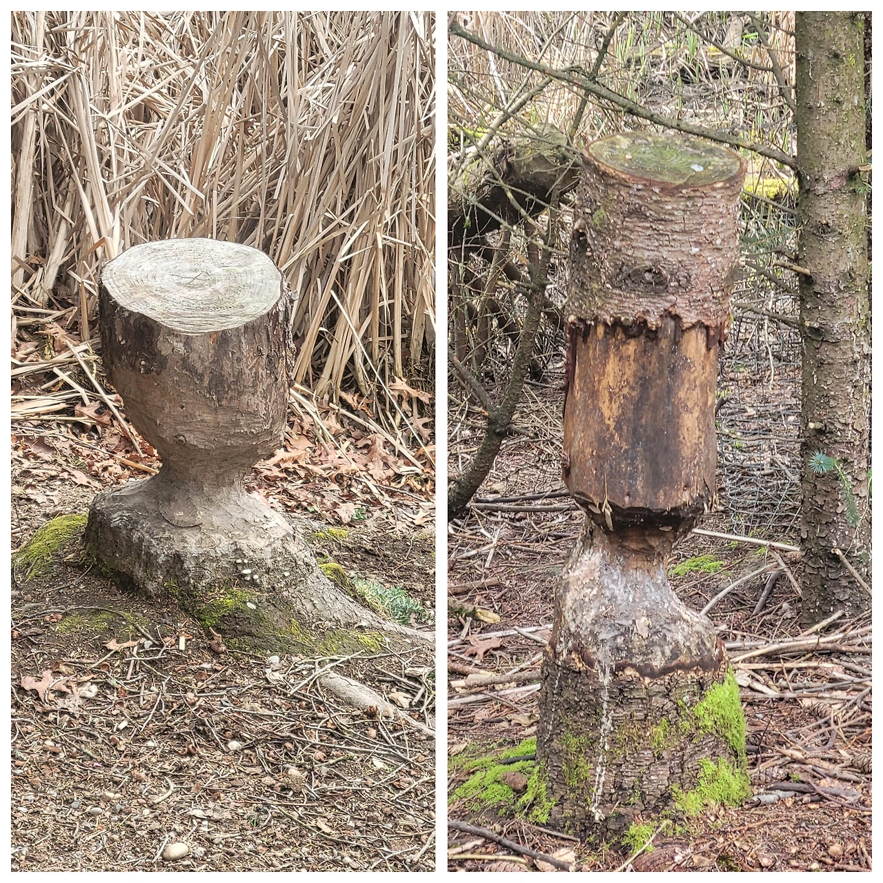 수달이 얼마 전 갉아 놓은 나무는 밑동만 남아 있다. 누가 보아도 사람이 도끼로 찍은 듯한 소행처럼 보인다. 주변을 둘러보면, 크고 작은 많은 나무들이 비슷한 모습으로 밑동만 남은 채 흔적을 남기고 있었다. 이 나무들은 수달의 집요한 공격을 견디다 못해 고요한 호숫가에 무참히 생명을 잃은 듯 보였다.