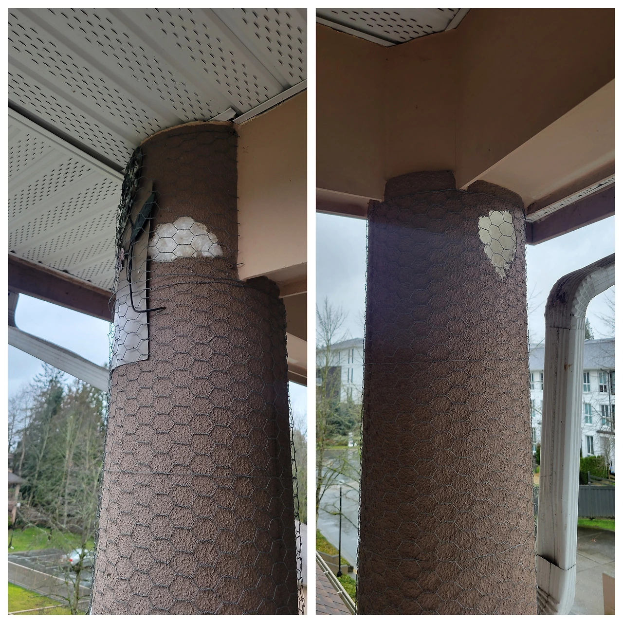 이곳뿐만이 아니다. 봄이면 내가 살고 있는 집 베란다 기둥에도 딱따구리가 산란을 위해 기둥을 마구 쪼아 대어 구멍 난 곳이 한두 군데가 아니다. 기둥을 보호하기 위해 이곳 역시 철조망으로 둘러 차단을 해보지만, 소용이 없다. 해마다 봄이면 딱따구리와의 전쟁을 치르는 것이 행사처럼 되어버렸다. 딱따구리는 기둥에 피해를 입힌다고 생각하지 않는다. 오히려 이곳이 자신의 터전이라고 생각하고, 끝없이 기둥에 집을 만들기 위해 쫓아대다 보니 자연스럽게 기둥에 손상을 입히게 된다. 수시로 날아와 기둥을 쫓아대는 소리를 듣고 창가로 다가서려 하면, 이미 인기척을 알아채고 날아가 버린다. 그때마다 안에서 움직이는 소리까지 들을 수 있는 청각 능력에 또 한 번 놀라게 된다.